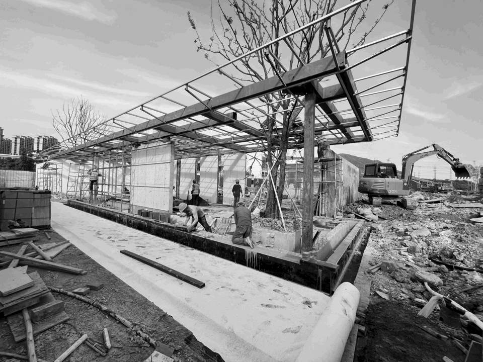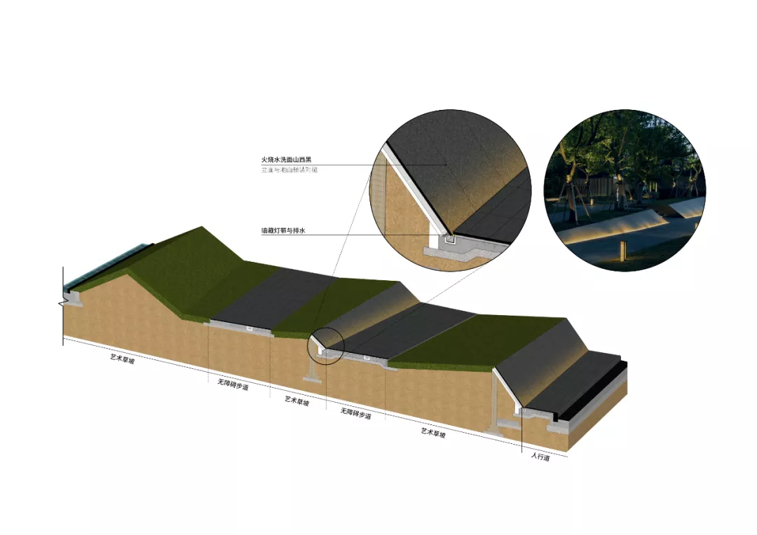 工序化繁为简:在过程中对部分造景元素进行了一定的材料调整和工序优化(如草阶原做法为砌体粉刷后质感涂料,改为不锈钢包边安装在砌体上后喷金属漆),节约了工序,有力保证了项目在20天左右的有效工期内完整落地。
