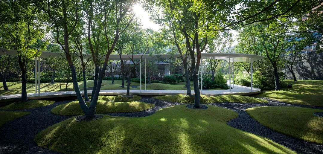 休闲空间:后场均以乔木和纯地被组团的方式打造轻松、自然的植物空间,在小场地中保持视线通透,体验感也很愉悦;