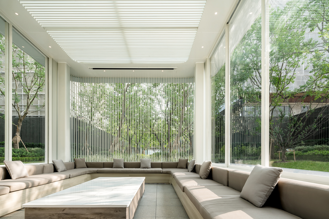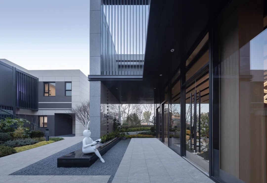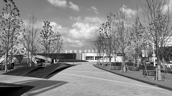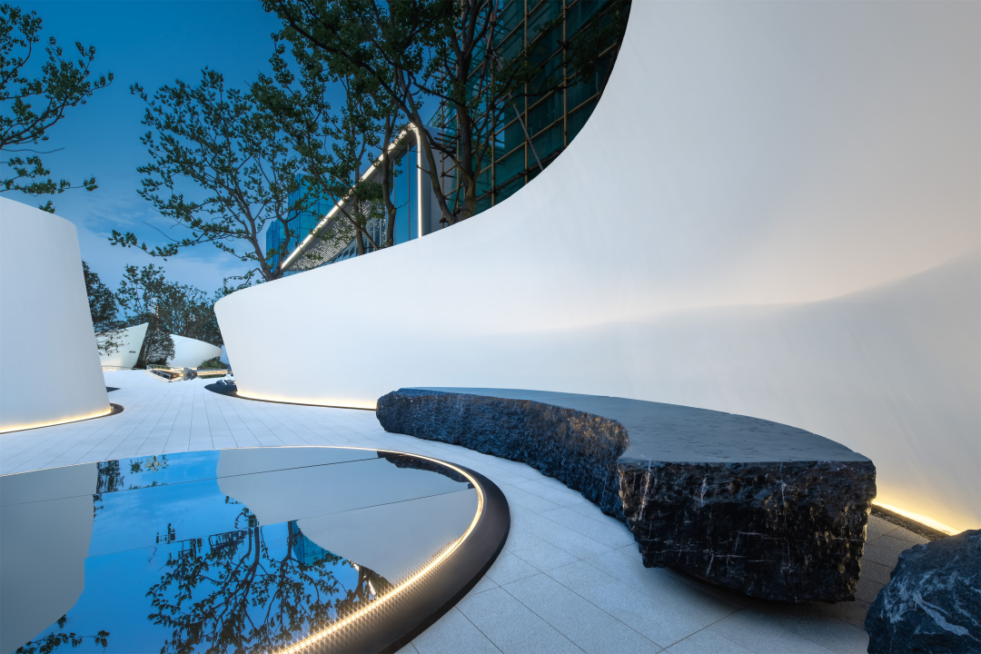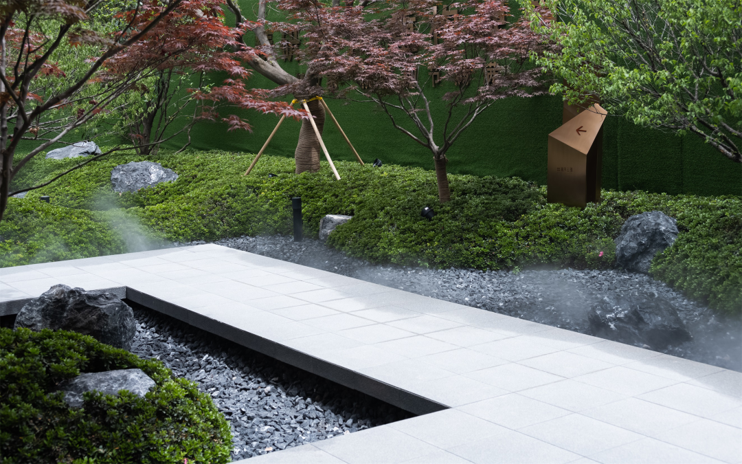 形象入口:以干净简约的纯林做背景,营造纯粹感和仪式感,结合置石打造记忆点景观;