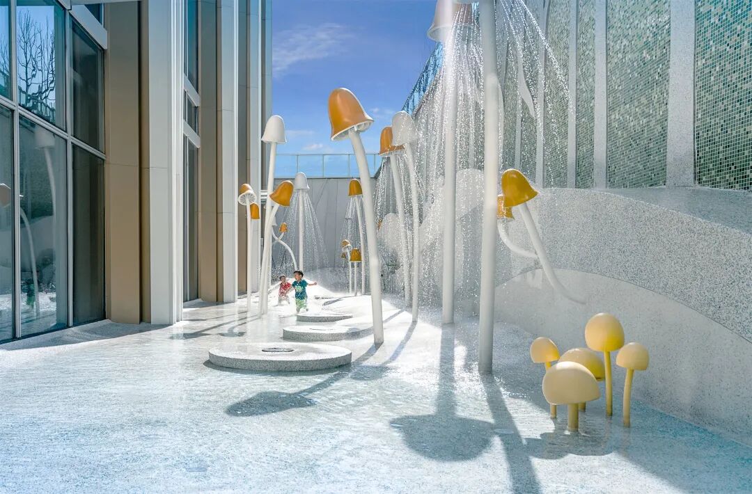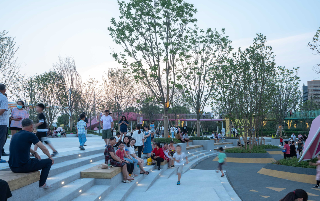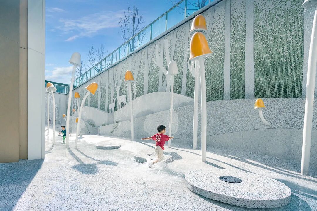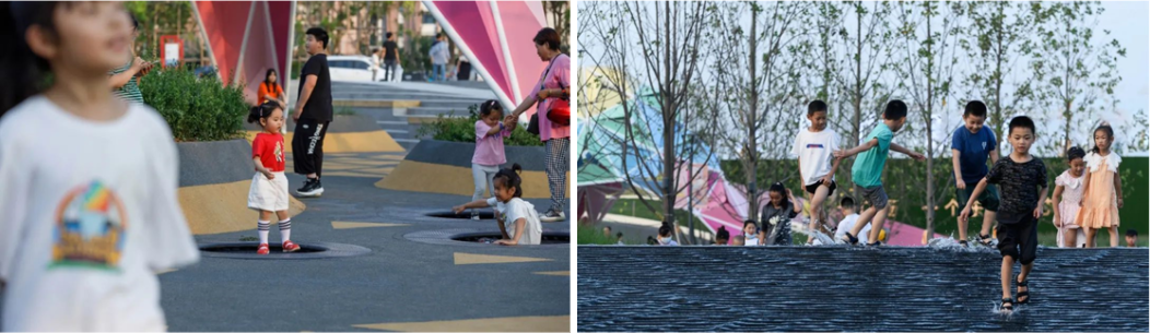儿童嬉水区营造轻松活泼的氛围,乔木选择丛生乌桕 ↑