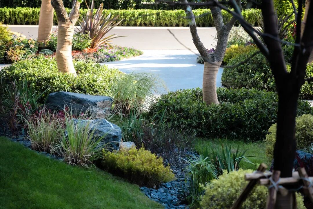 景观创新工艺的升级落地(包含:双色夜光水磨石、绿化隐形排水、乔木隐形支撑等)