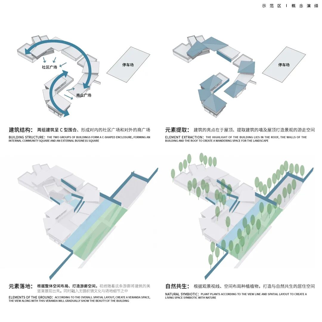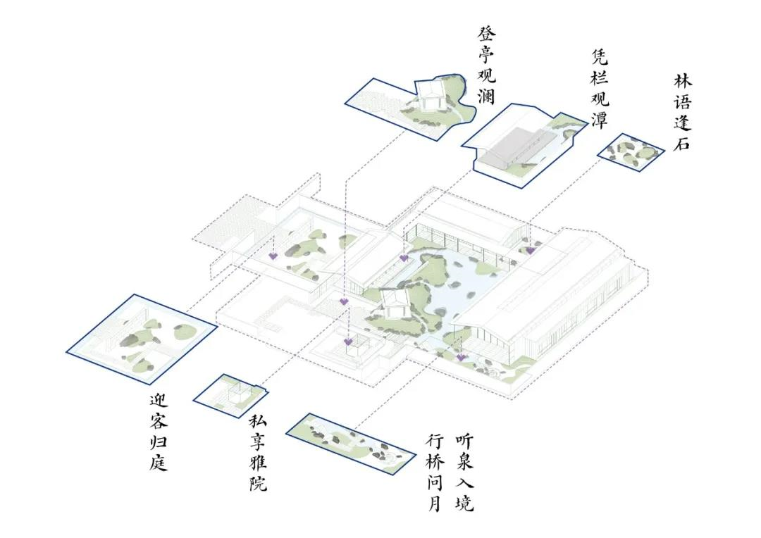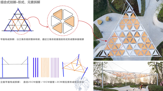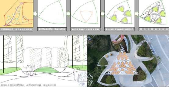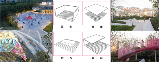 主题空间采用多种空间形式:围合、覆盖、凹凸、架起 ↑