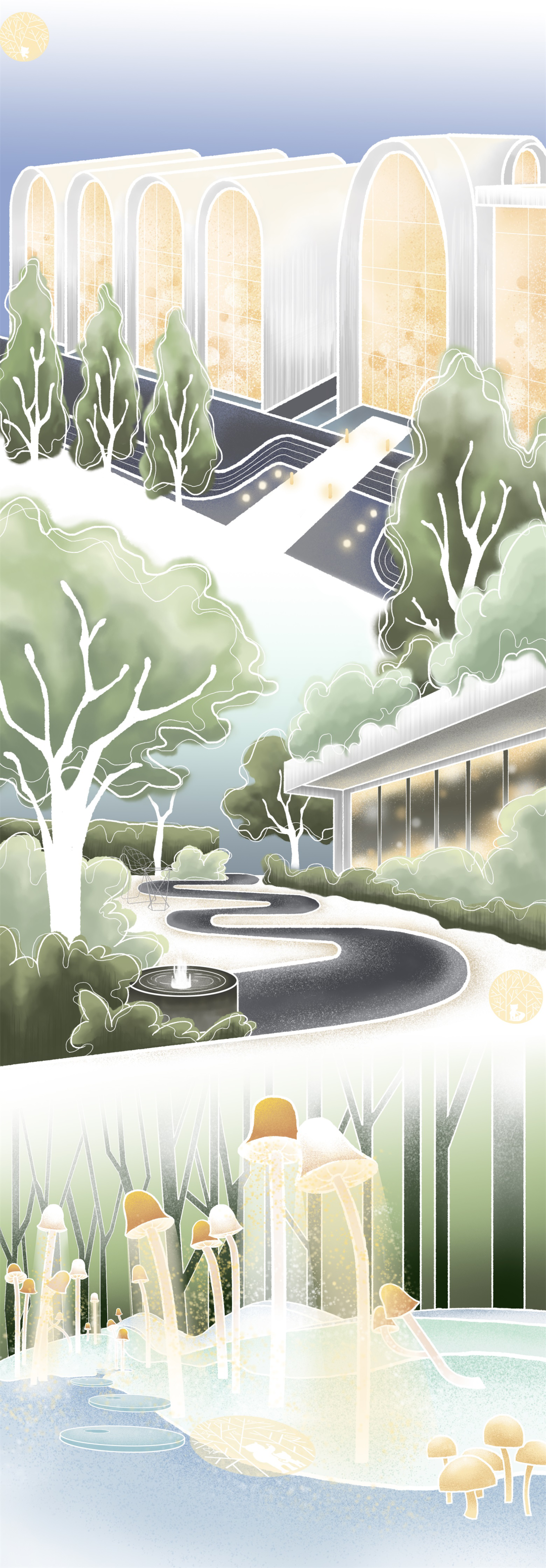 气是万物的本源。“草木郁茂,吉气相随”,“木盛则生”,场地用植物营造自然、建筑被植物环绕,乘生气,滋润住户。