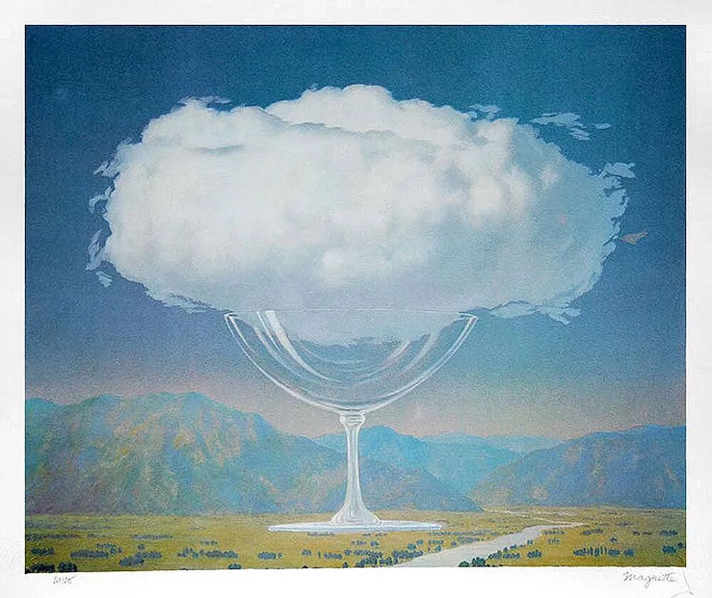 同样的,2017年佳士得以1,440万英镑的价格卖掉的《心弦》(1960年作),马格利特将一个空杯子放在一片云彩下,画中的杯子装满白云,画中无水,但水又是将看似毫不相关的事物相连的以奇诡方式结合起来事物。