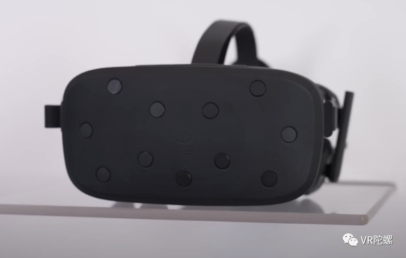 除了头显前部位置布满了黑色的圆形,头显下方更是布满了小突起,这是眼球追踪摄像头所在的地方,转角地方有一个小的反射器将图像反射回来,为用户提供变焦系统。