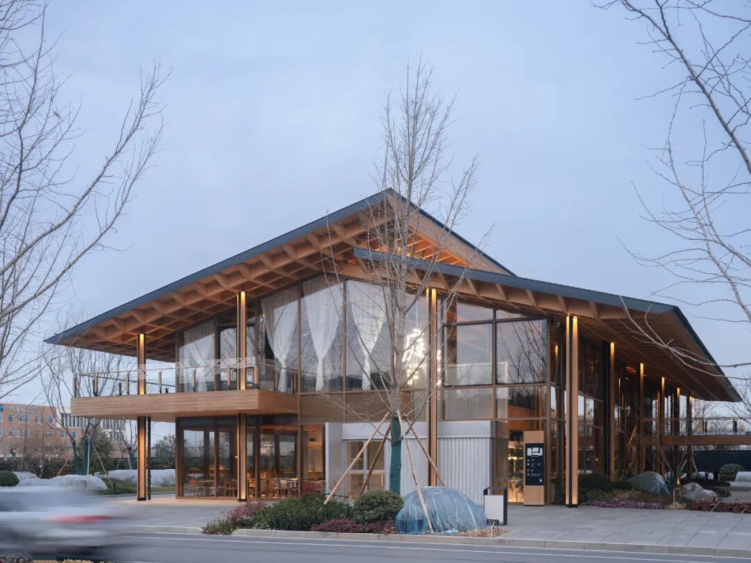 灯光设计接续了退让美学的叙事。设计弱化了景观灯,着重表达自然的阴翳之美,让建筑站上舞台,以原木的金黄映衬天空深蓝的幕布。少量特定角度的灯光辅佐着建筑,拉出景观层次,映衬出独特的墨绿质感,在玻璃的透景下,画面中内外难辨。