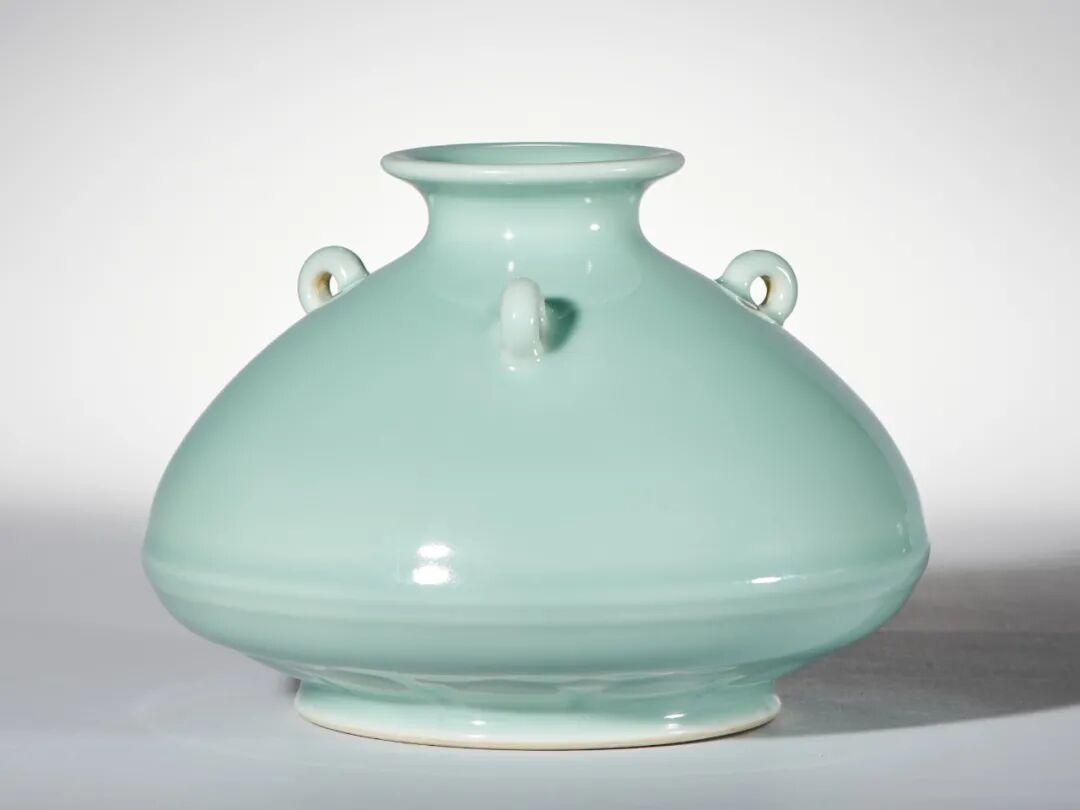此梅瓶线条优美流畅,隽秀娴雅,为雍正官窑单色釉精品之作。清雍正时期青釉瓷器的生产无论是配方还是对烧制技术的掌握均达到了历史颠峰,此不为虚传。