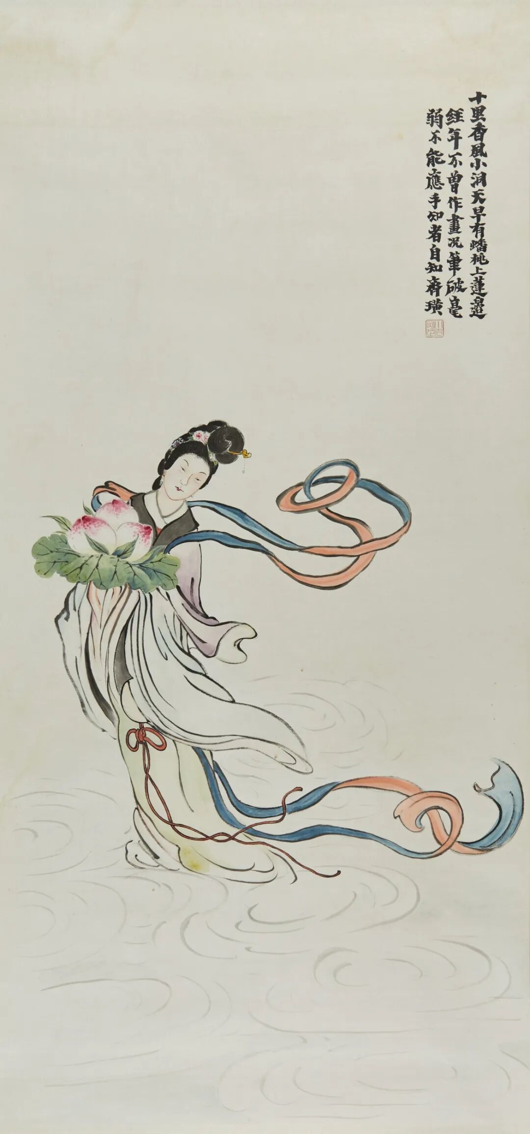 款识:十里香风小洞天,早有蟠桃上连边。经年不曾作书,况笔破毫弱不能应手。知者自知,齐璜。