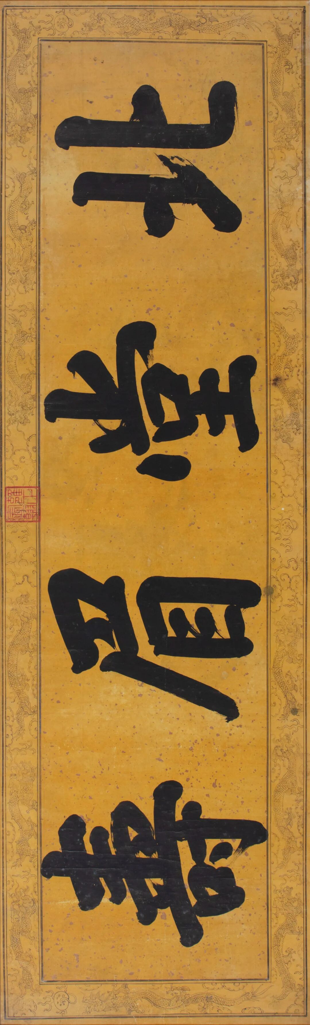 据《清宫内务府造办处活计档》载:雍正元年(1736)「正月二十三日,怡亲王交……红色寿山石苍龙教子钮图书一方,奉旨……苍龙教子钮图书镌『雍正宸翰』。钦此。于三月十三日……红色寿山石苍龙教子钮图书一方,镌『雍正宸翰』四字,配做一锦匣,怡亲王呈进。」