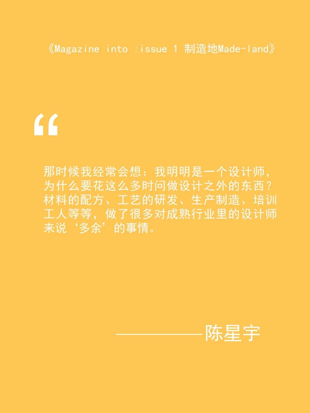 Magazine into团队在走访产业地、设计师与品牌的过程里,试图呈现在特定时代与文化背景下,人们如何以设计为媒介与本土有限的制造条件实现共生,因此诞生了第二本《Magazine into :issue1  制造地》。