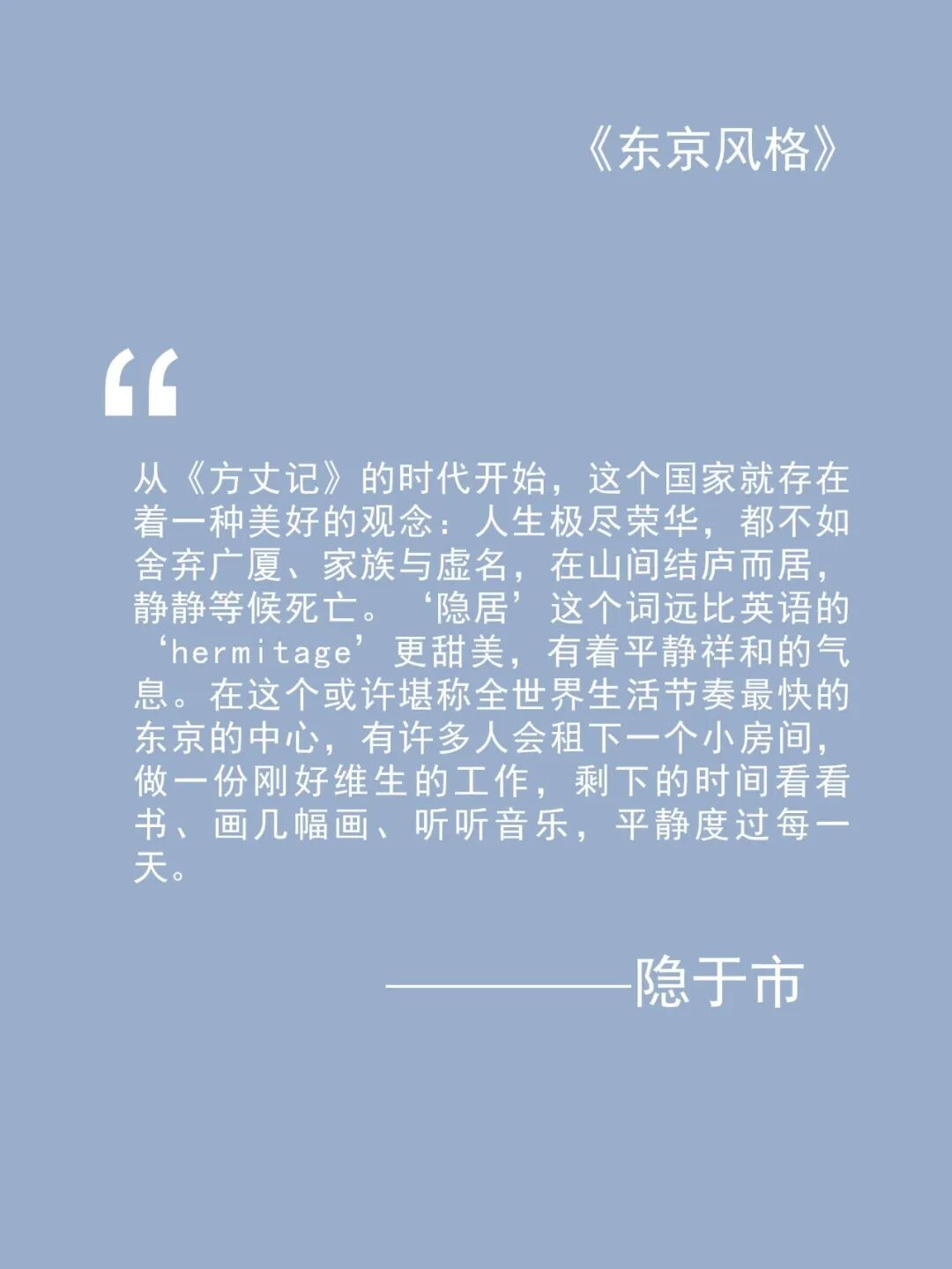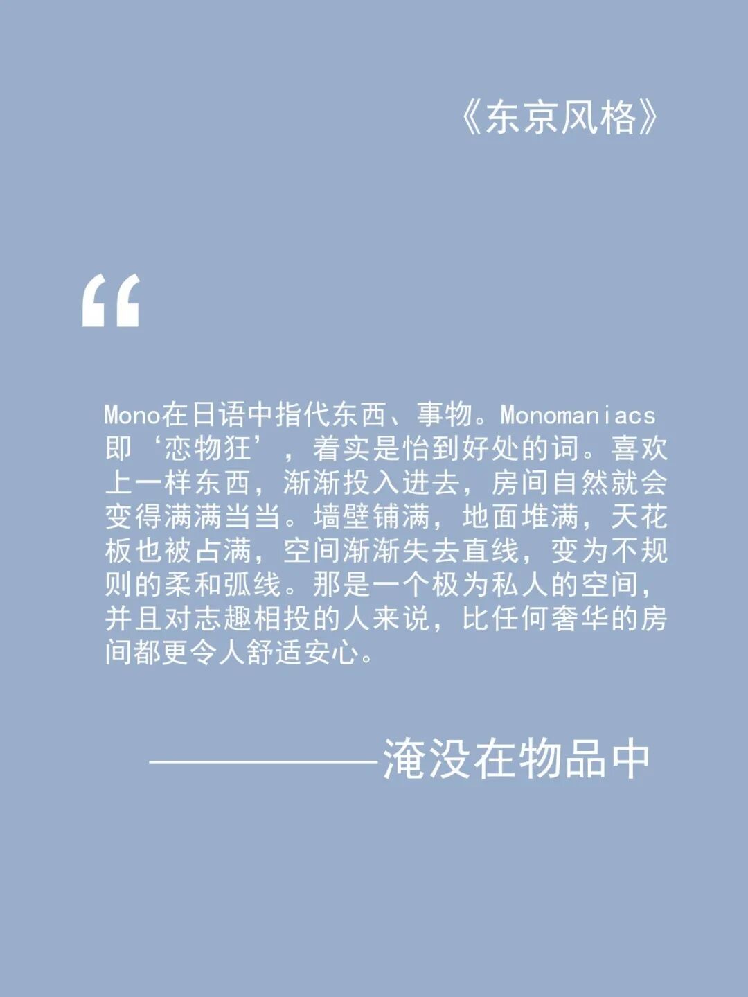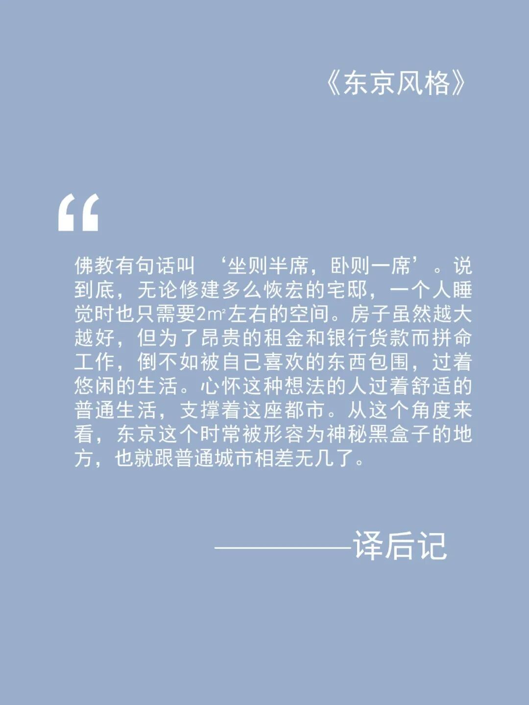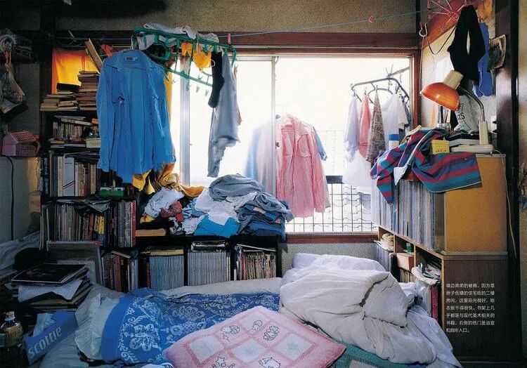 有趣的题外话是,本书内文的摄影记录起拍于1991年,正是日本泡沫经济破灭的时代,年轻人一方面被外界打满鸡血,要求努力上进,一方面又溃于现实,不知所措。都筑响一说:“我只是希望能够以某种形式调整人们的观念。让人们重新思考,什么是自己真正想要的生活。”所以才有了腰封那句:“不要努力工作,不要买房子,租一间陋室,享受人生吧。”