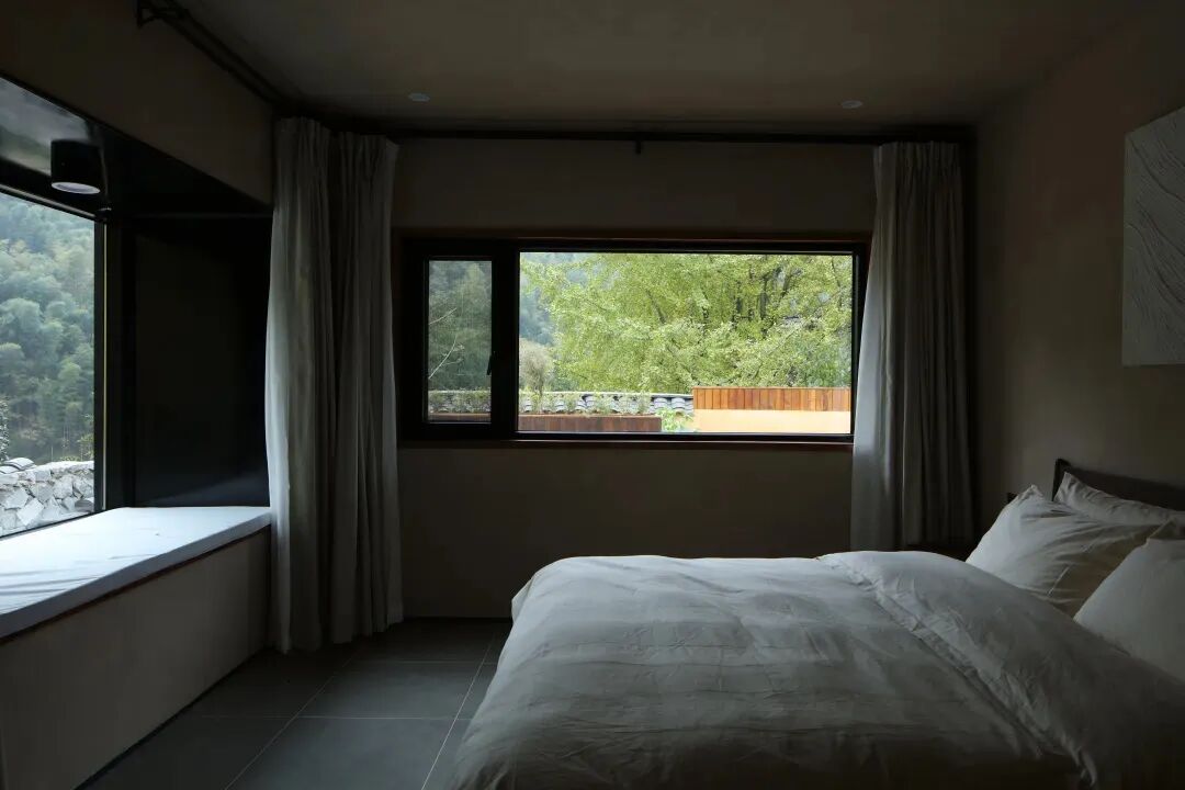 民宿一共打造了8个院落27间房,以家庭为单位组合规划生活场景,室内设计以简约舒适为核心,营造一种被自然滋养的沉浸式乡野体验。