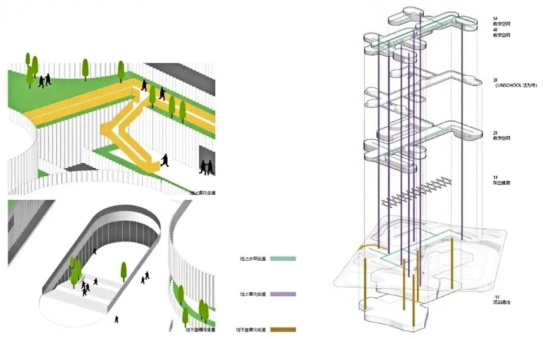 reMIXstudio|临界工作室的《都市绿洲》将教学空间与公共空间有效结合,形成功能齐全、自给自足的教学组团,并通过室内空间进行串联。
