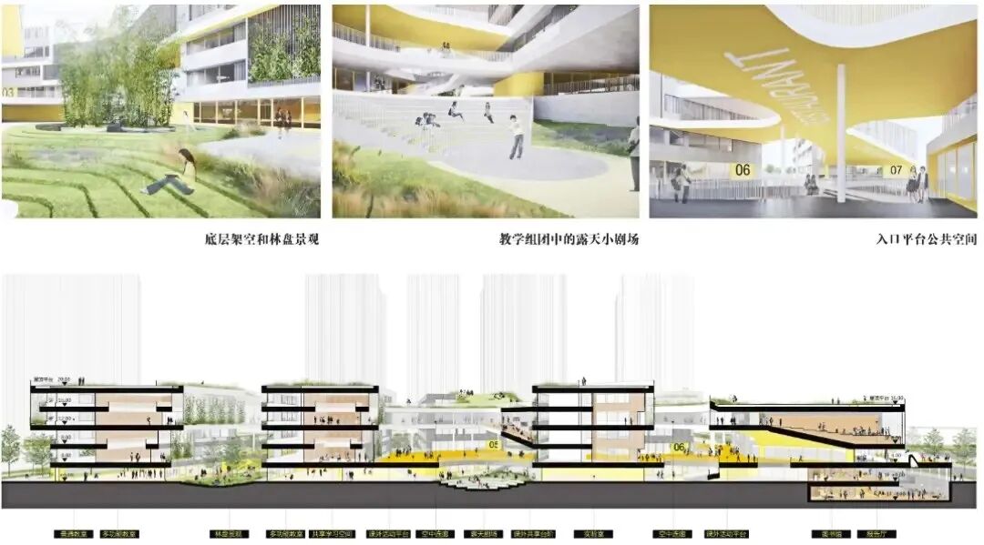公园城市理想实验室在海洋路理想校园设计中引入可变教室、教学综合体、学生活力带等设计思路,在创新校园空间设计上进行了探索。