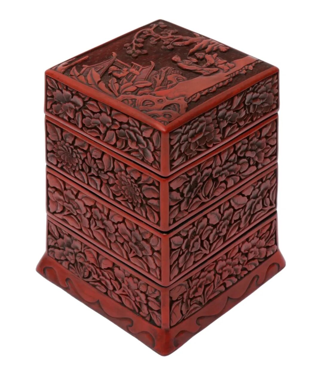 是次亚洲艺术品秋拍将呈现这件雕刻精美的剔红人物故事图纹三层盖盒。此盖盒可追溯至十五世纪初,以牡丹、菊花和人物场景为装饰,可谓是同时代工艺的典范。