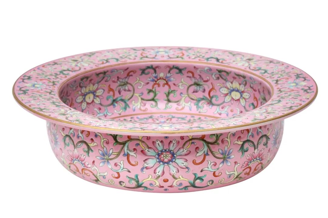 此精美的铜胎画珐琅盏托,以八只凤凰围绕一朵莲花为装饰,可说是向康熙时期的创新科技致敬,反映清代为艺术文化大熔炉的辉煌历史。