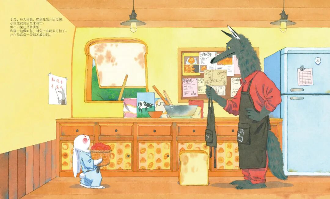 小白兔和狼先生,因美味的面包而结缘,一个认真教,一个认真学。