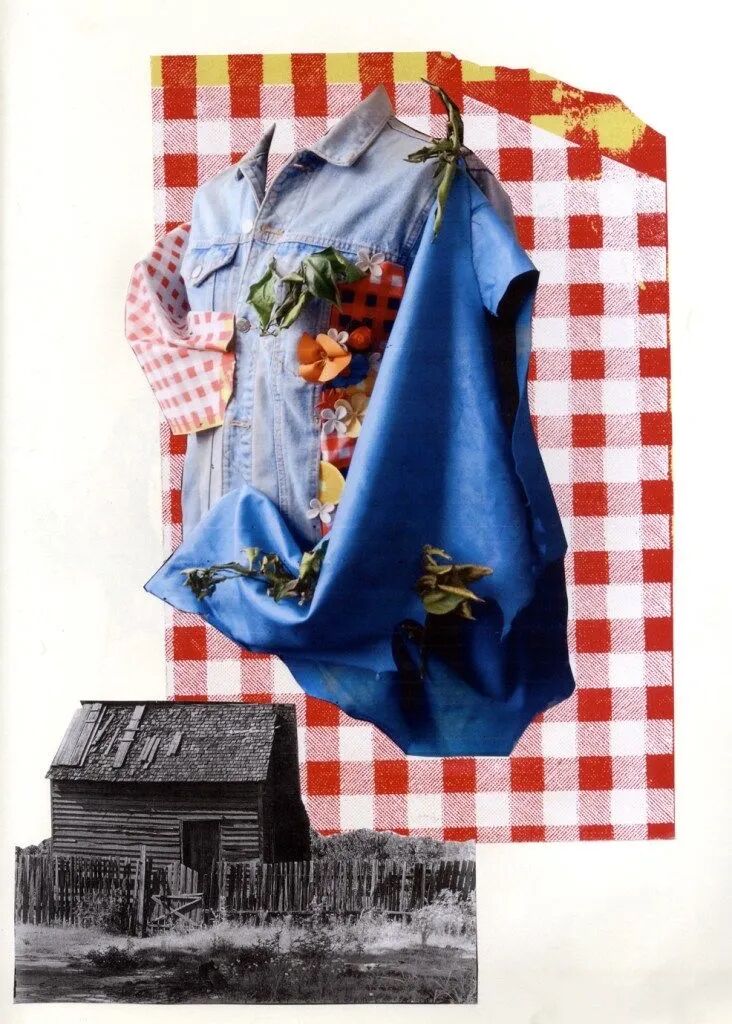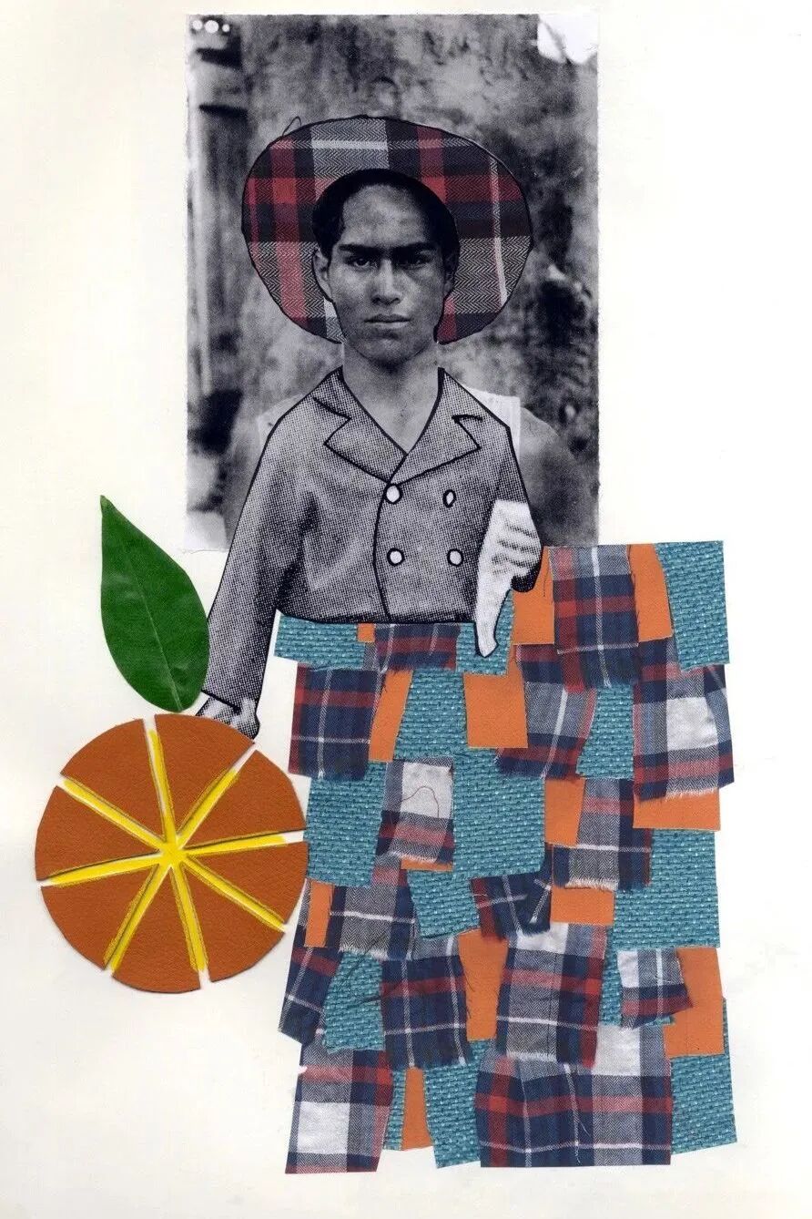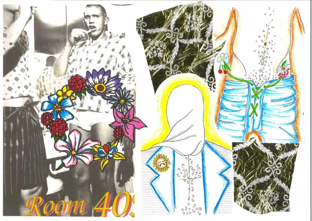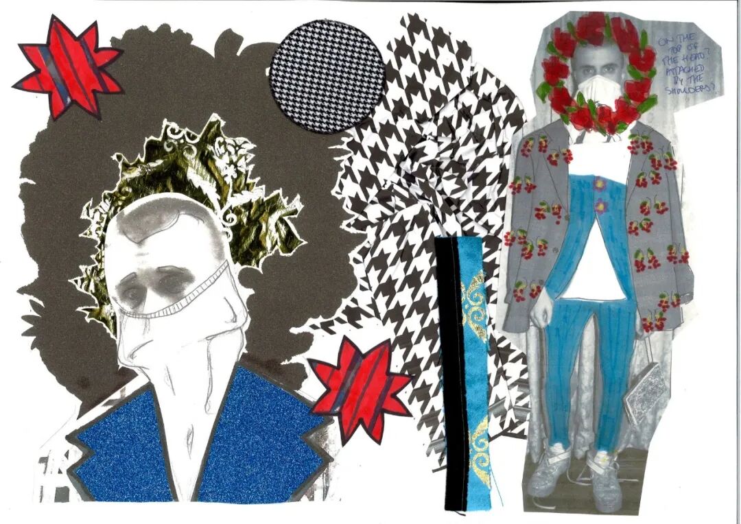 Nathan Korn设计的过程大多是用拼贴的形式呈现出来,他通过PS软件将需要的图形扫描出来,再通过拼贴的形式,拼合成想要的图片,最后印刷到服装上。