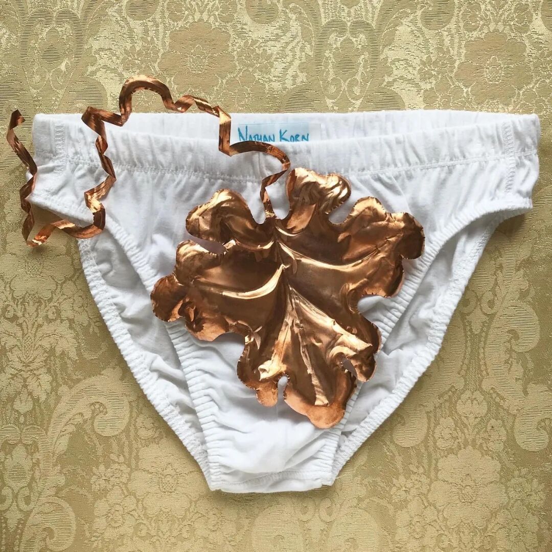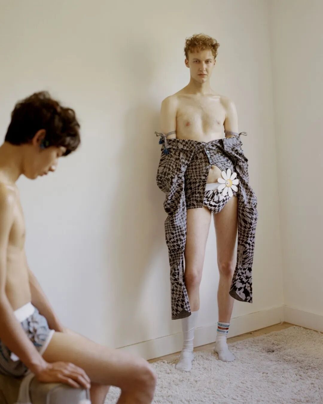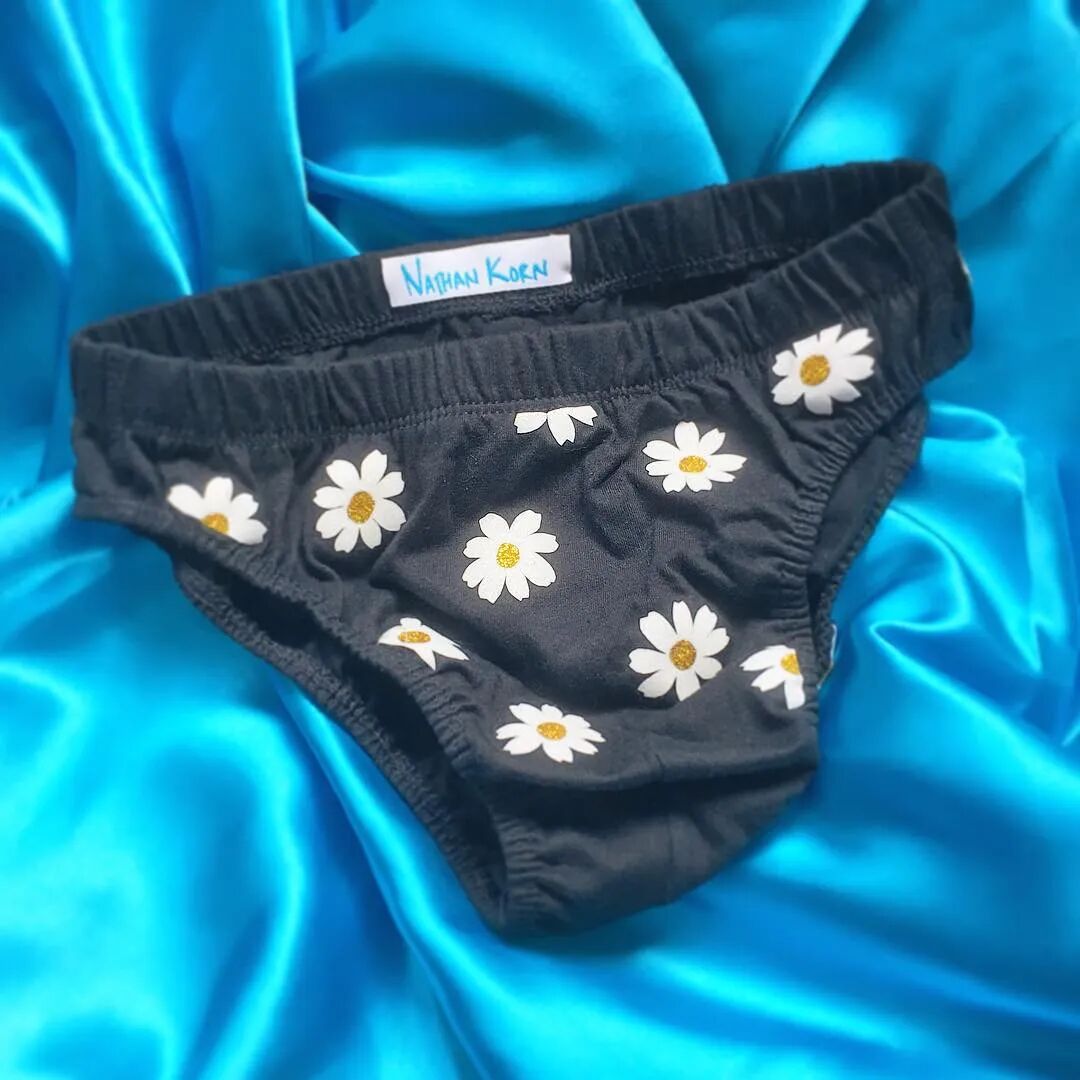 Nathan Korn的设计很大程度上受到其少年时期被绿色环绕的自由氛围的启发,他曾说:“这些别具一格的服饰是为了那些性感的男孩儿而设计的。”因此,Korn将许多,例如小雏菊、丝带、贝壳等充满少女气息的元素运用在他的男士内裤设计中,打破人们对性别分类固有的认知,来塑造勇敢做自己的且富有浪漫色彩的男孩儿角色。