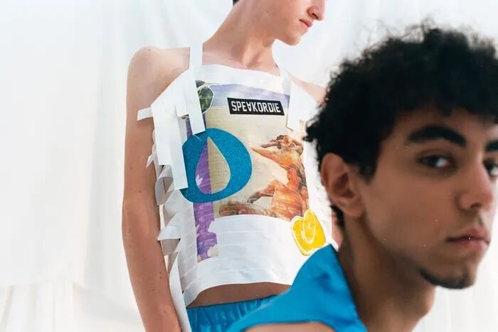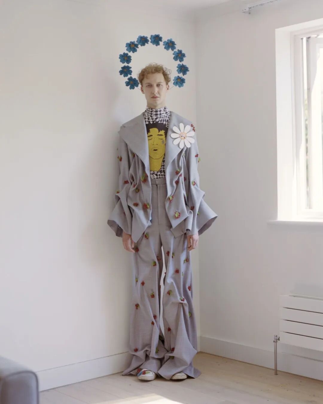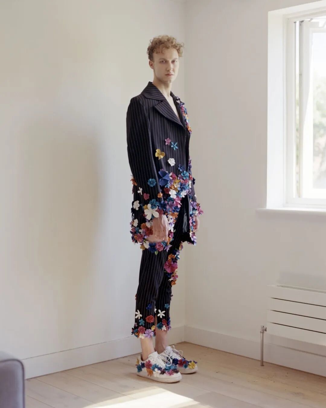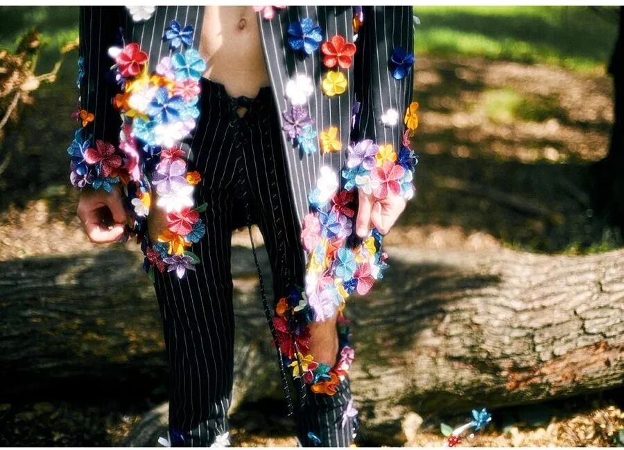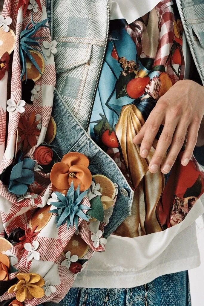 这个系列的最终结果对于Korn来说是非常奇妙的,他用手工制作的颜色大胆的花朵点缀着所有衣服,衣服上的蓝色,代表着从性别到情感再到自然的各种各样的比喻,而服装上的水果是为了隐藏我们周围不那么愉快的东西。