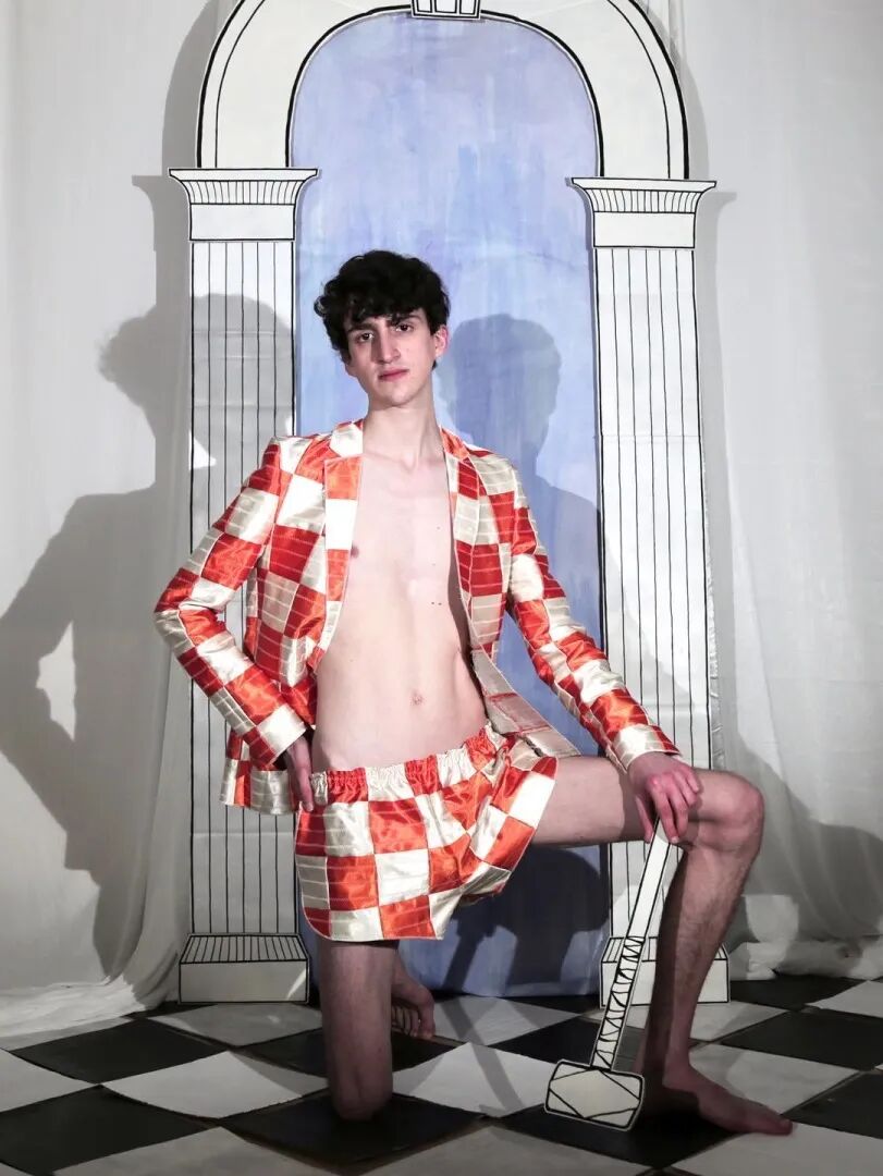 2019 SS系列是Nathan Korn品牌成立以来的第一个独立系列,系列名为「一个弓箭手的身体」,系列灵感来源于Mark Merlis 1998年的小说「An Arrow‘s Flight 」,讲述了古希腊众神任性的脱衣舞儿子们的故事。