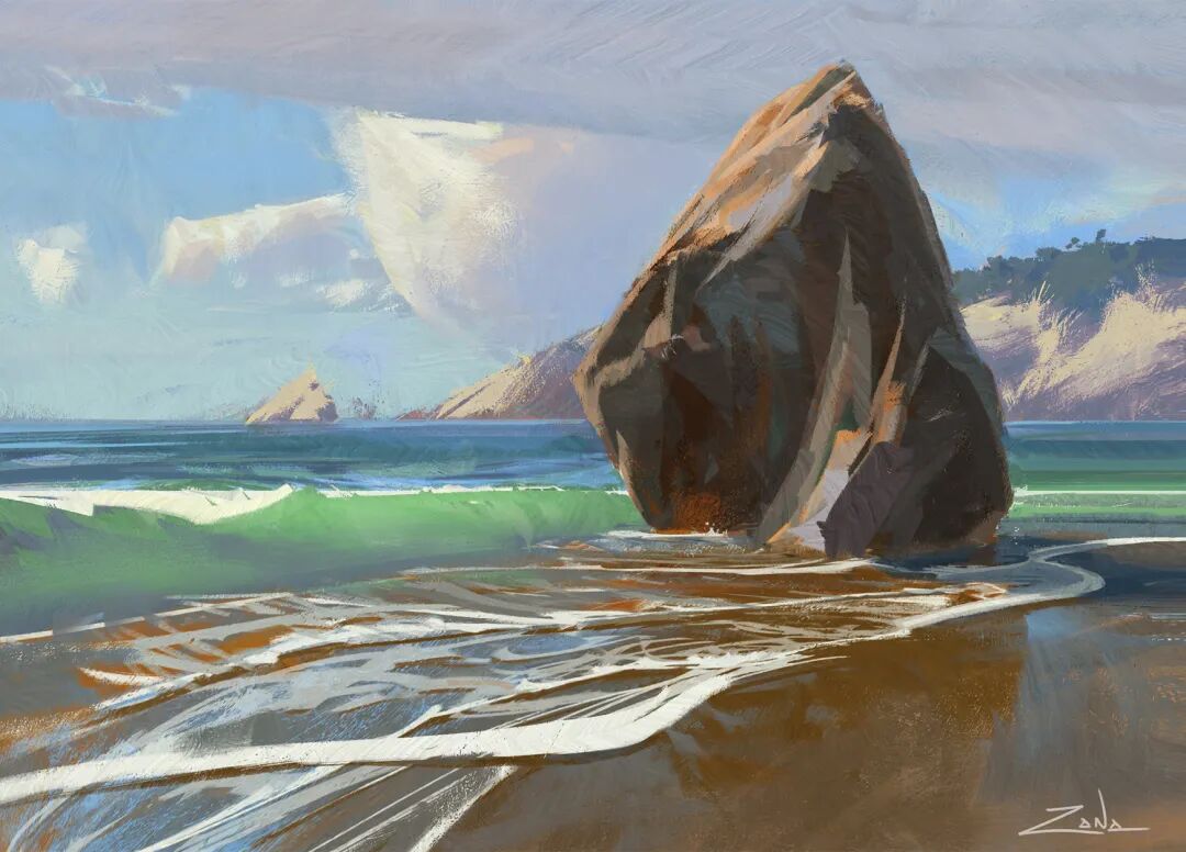 Eytan Zana擅长场景概念设计,他的作品简洁大气,构图饱满精巧,笔触有着油画般的厚重质感,光影堪称绝妙,色彩使用也非常稳。
