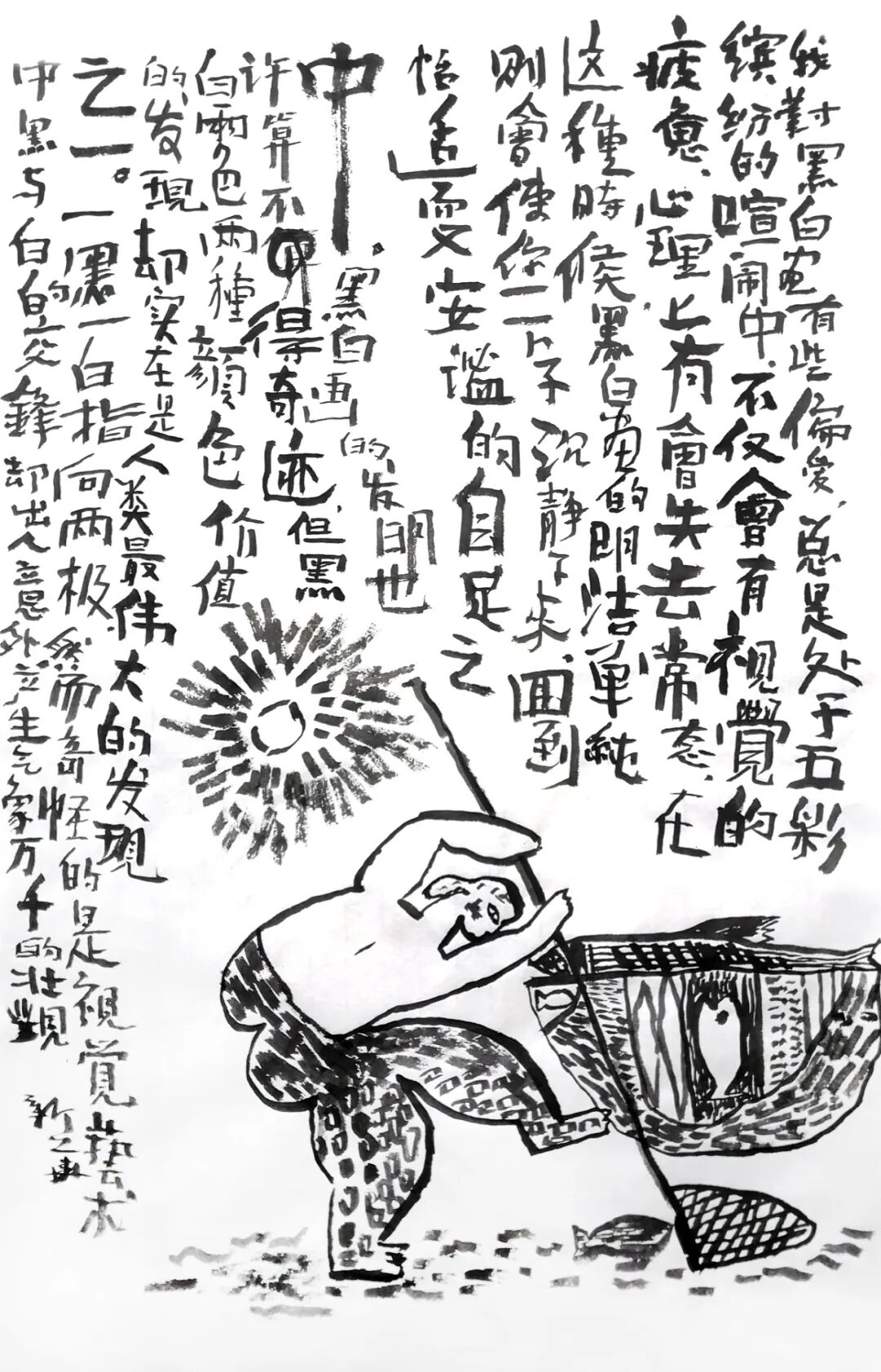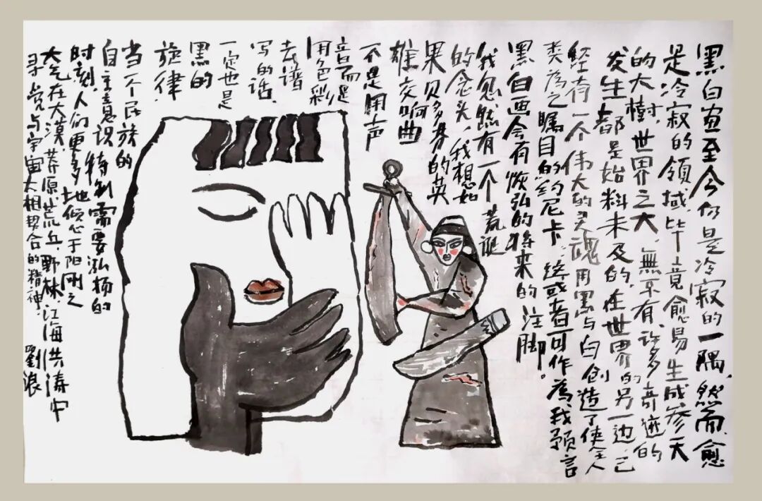 刘新华,画家,号刘意、刘焱。居北京,主任编辑,在大学学艺七年。高更和凡高这两有“高”字的高人说他看见“光里有灵魂”,我说我知白守黑,看见“黑白有魂魄”。看黑的有象、看白的有气。万物一体,天地与我共生,万物与我为一。