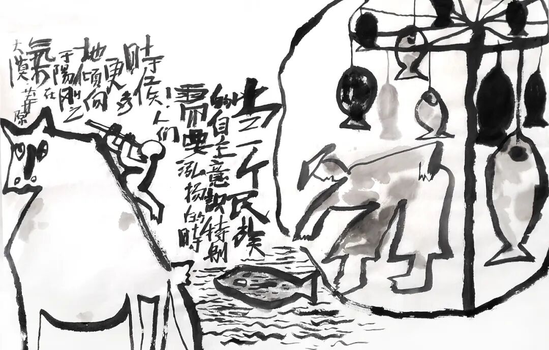 我学儿童画就是学小孩的胸无成竹,将错就错,随机应变。中国文化就是依山就势,长城就是这么建的。学儿童就是学我们基因中的这个东西。