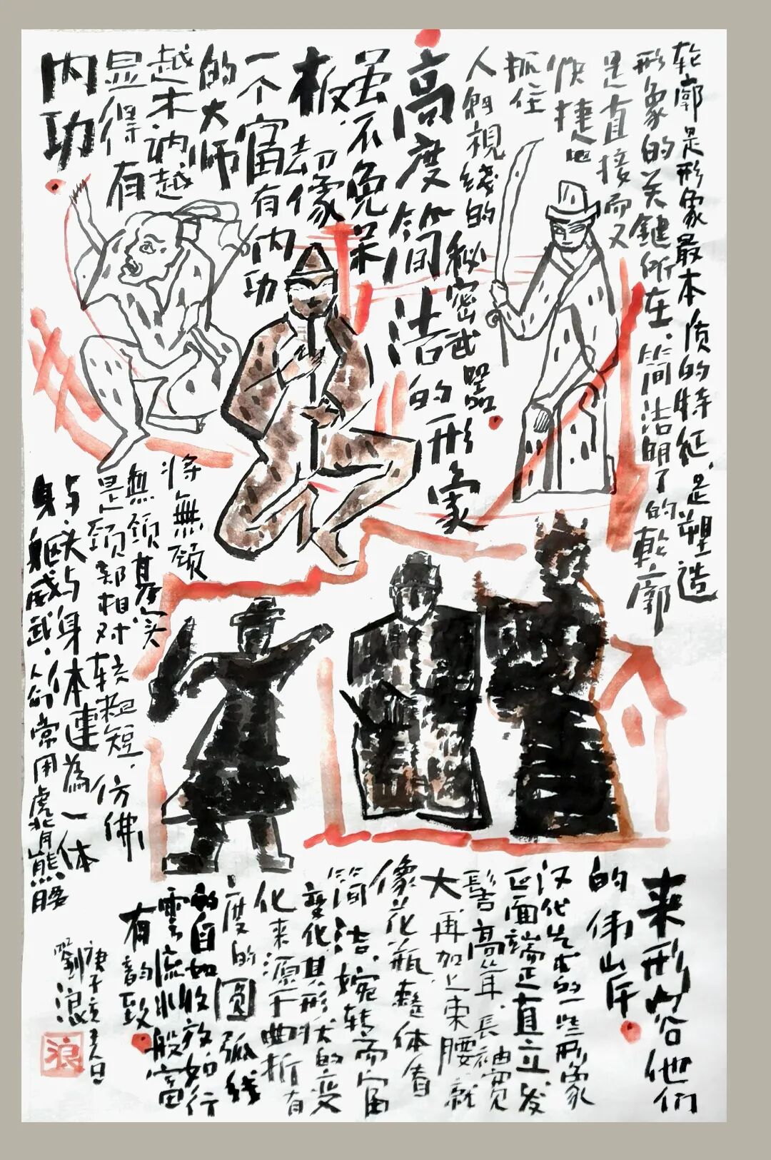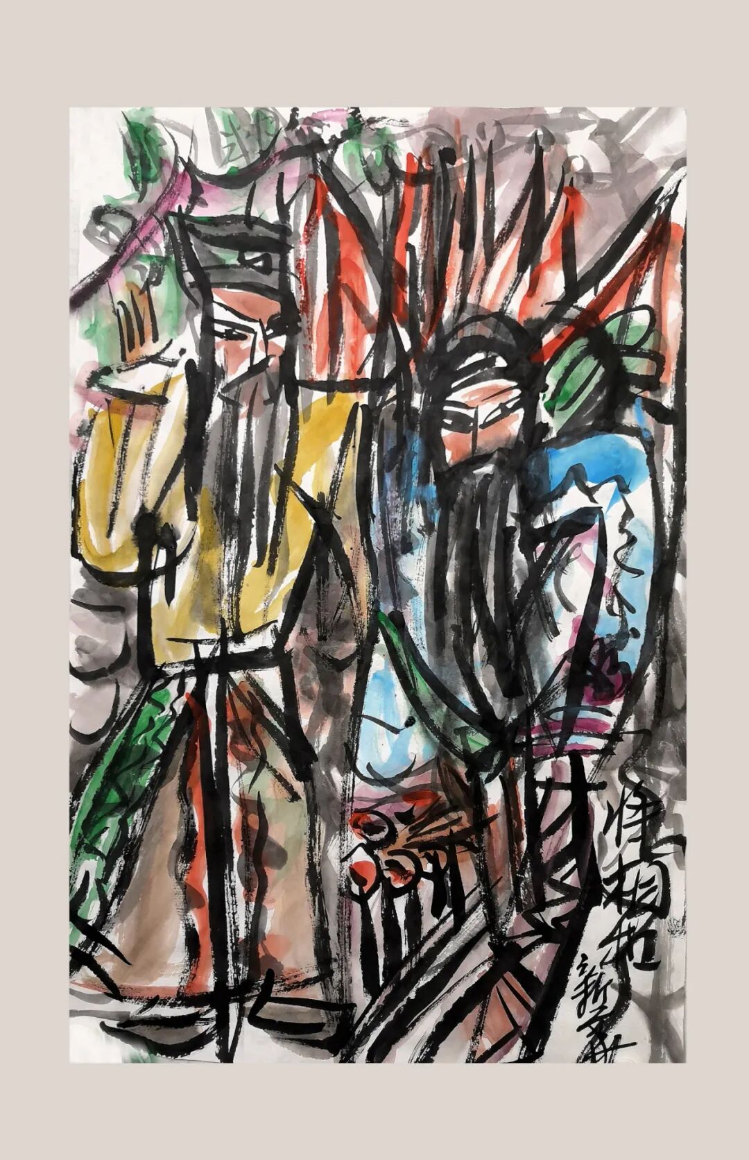 我的绘画是热烈和阳刚派,我以为如果艺术没有像太阳一样照耀和温暖着人类的精神,给人类精神以自由的生发和成长,哪还要艺术干什么?我的绘画,正是要表达岀自由的阳刚的生命的力量。我的绘画是生长的,是开放的,进取的,是精神层面的表达。我不再是古贤的小学生,也不会去简单地再现生活。我要从自由精神的层面升华和強化今人的绘画,展示人类审美进程里今天的面貌。我会率性地表达自我,发展自我,深刻自我,強健自我,成为自我,做自己时代的艺术家。