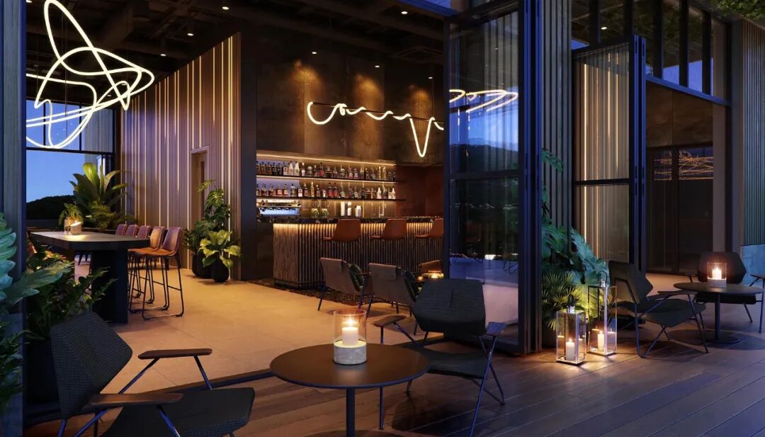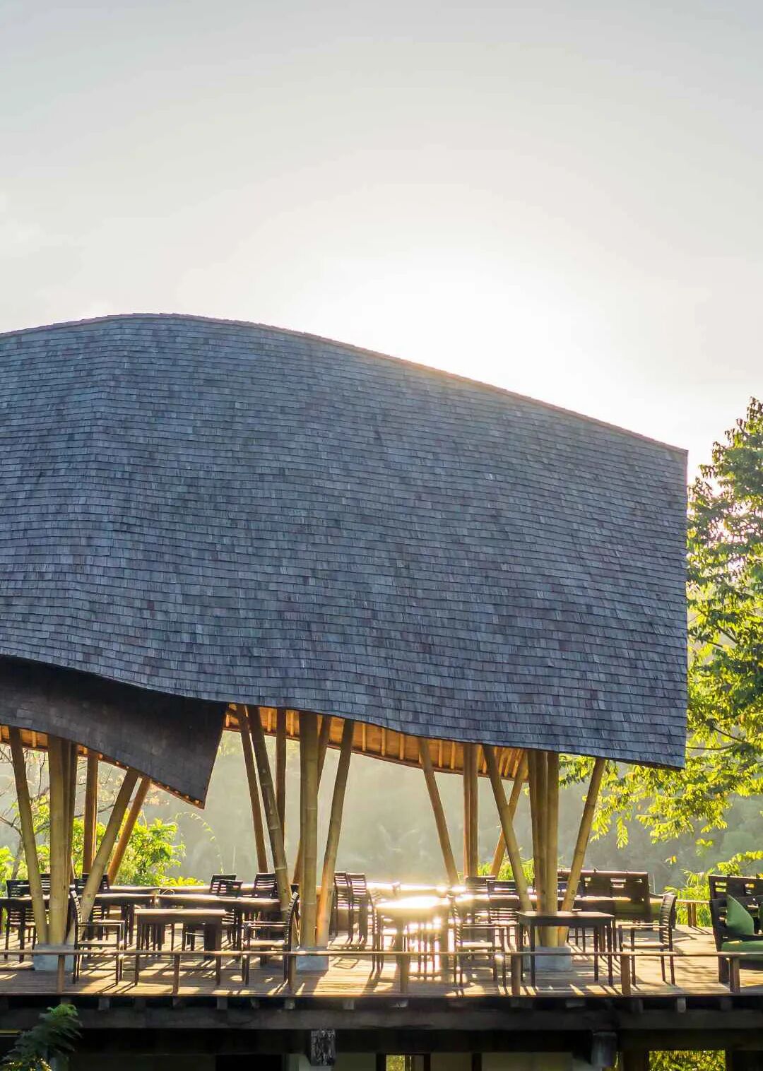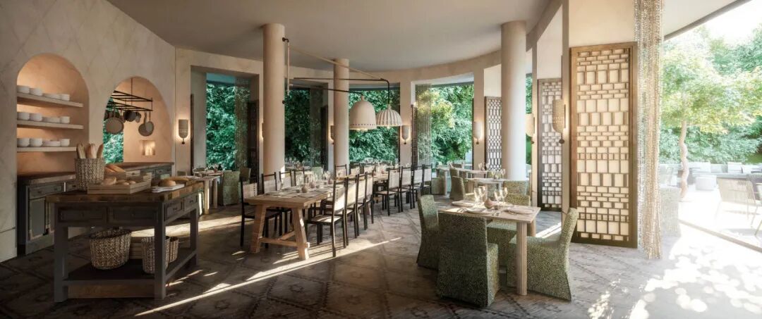 度假村中央设有开放式用餐空间与休息空间,营造社区氛围。餐饮主打蔬食概念,七成餐点都将以植物性食物为本;零废弃“农场到餐桌”的理念体现了品牌的可持续精神。