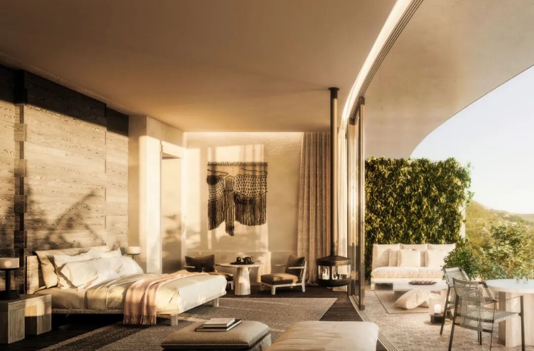 品牌首创“无界、无限”概念,酒店共享空间与客房皆是“无窗无墙无门”。室内与户外仅以“一层薄纱”相隔,为宾客打造与自然深度接触的沉浸式体验。