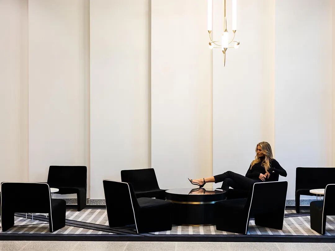 室内设计注重营造充满光的环境,并以空间和光线为核心,打造提升情绪的氛围。180度无遮挡的全景落地窗将光影幻化成设计的一部分,编织质感的屏风温柔地包裹休息区,营造适宜交流密谈的亲近感。