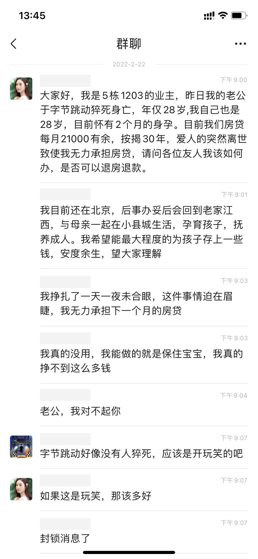 昨天晚上九点,一名字节员工的老婆爆料老公猝死的消息。因为老公去世,无力偿还每个月21000元的按揭30年的房贷,需要将房子处理掉。