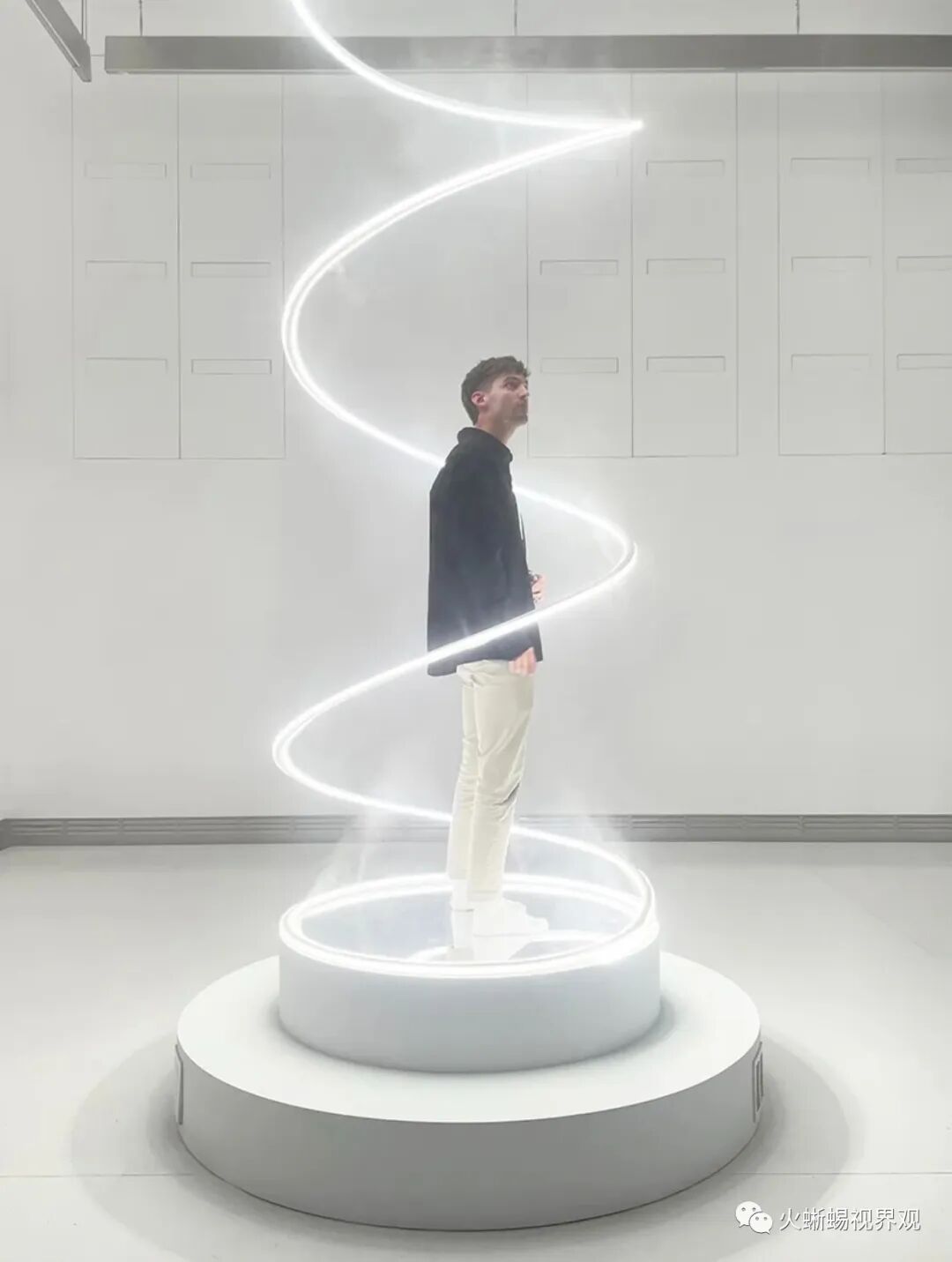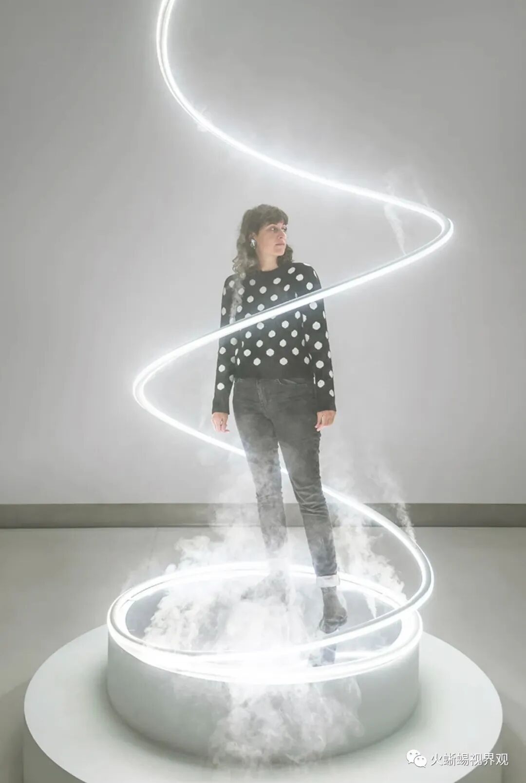 卡洛琳娜·哈拉特克(Karolina Halatek)的《上升》(Ascent)提供了一种独特的沉浸式体验,邀请观众进入螺旋,体验与现实空间相结合的新空间维度。当观众进入互动装置时,他们成为中心,被从螺旋发出的充满活力的光和慢慢升起的雾所吞没。他们可以根据作品变化的感官反应和展示自由地接近和互动,每次都唤起新的感知想象。
