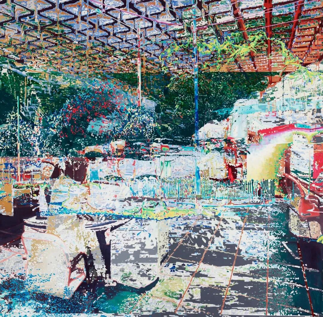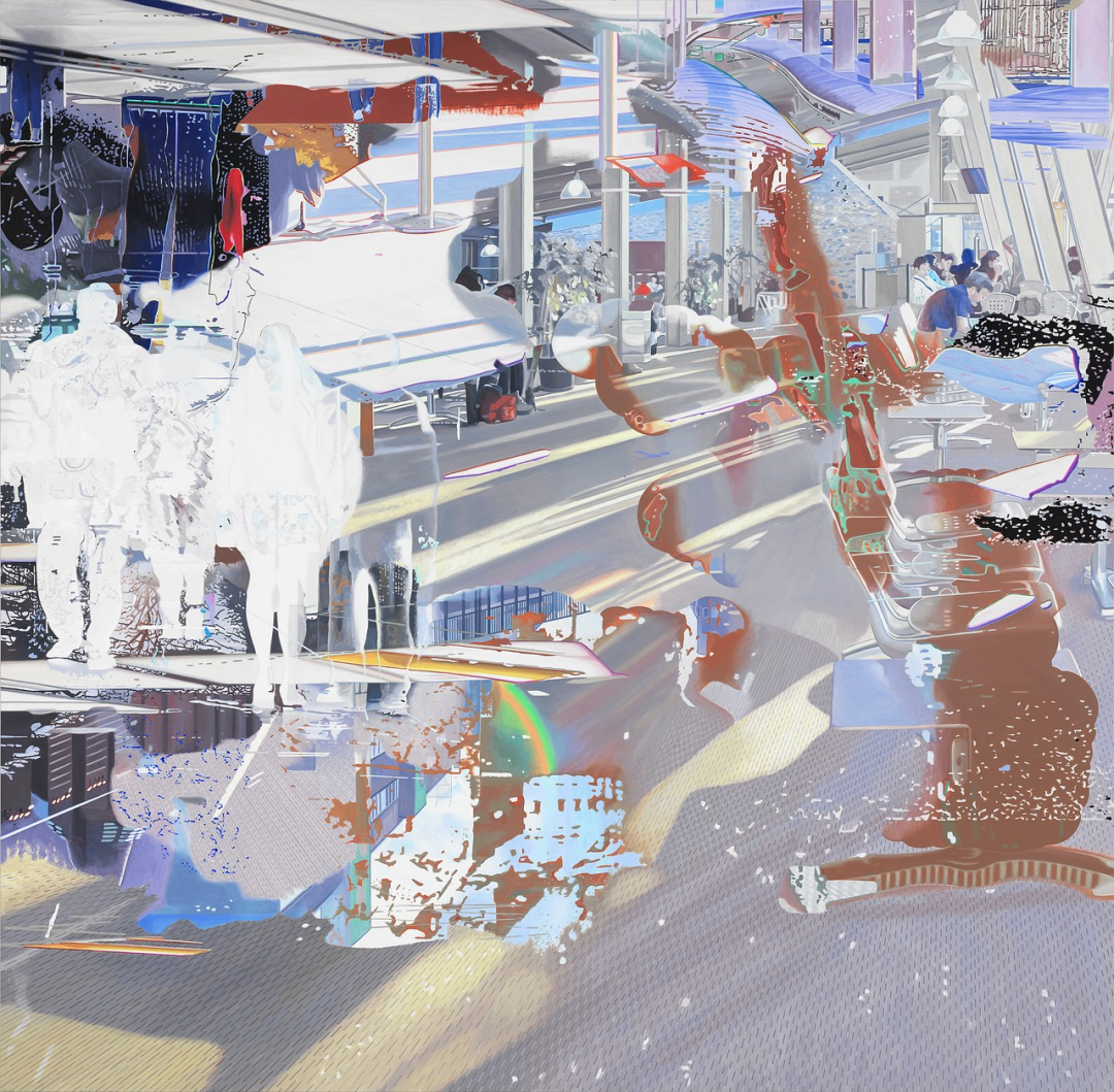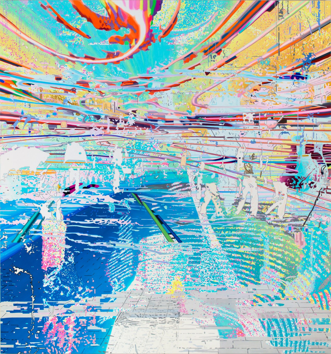 Corinne Wasmuht 以其大型、多层次的绘画而广为人知。她的作品源于一系列绘画发明,最终形成一种独特的审美张力,旨在调和艺术家所说的“现代主义的二元论”。对于她的绘画创意,艺术家在日常生活、自然、科学和艺术图像档案中进行选择。这些图像,无论是挪用的还是她自己的,都融入了现代背景。这些画作通常缺乏单点透视,并以图像和色彩分层,产生了过多的可见性和密度,使观看者无法获得任何坚实的感知。