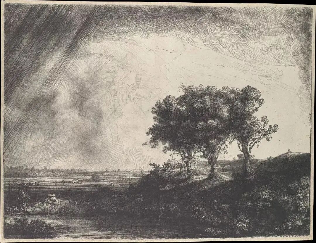 伦勃朗 蚀刻版画版画 《三棵树》