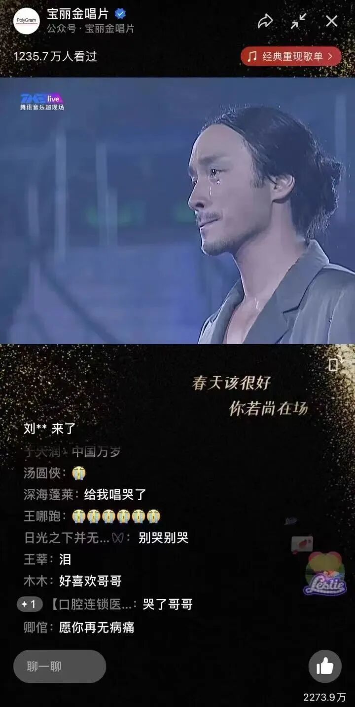 在此之前,不少人都认为产业新生的机会更可能来自音乐平台,抑或是快手、抖音、B站等短视频平台,但经过五月天、westlife、张国荣以及崔健等几场朋友圈刷屏,更多人可能和我一样,开始意识到,线上演出,不光得有音乐,更需要社交传播和情绪共鸣。