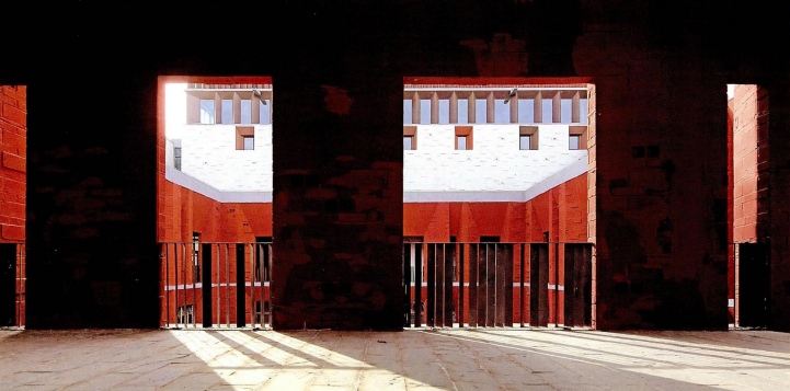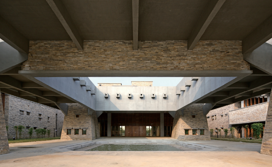 突出于屋顶的大小高低各异的方楼,在其中营造了如传统羌寨迷宫般丰富的聚落空间。高敞的前庭既连接三馆,也强化了入口广场城市空间的开放性。碉楼、坡顶、木架梁等羌族传统建筑元素经过重构组合,成为建筑内外空间组织的主题。