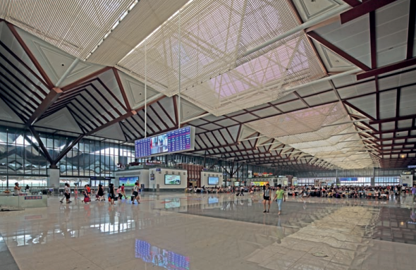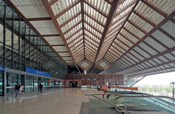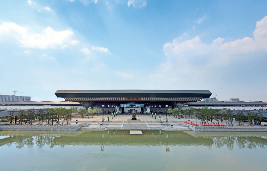 苏州站位于老城北边,隔护城河与姑苏城相望。现代化轨道交通系统的发展使老车站难以满足使用要求,需要一个大规模、综合性的交通枢纽取而代之。新站创作的核心问题是如何使庞大的空间体量与苏州细腻、幽雅的小尺度氛围相协调,从而坚持“苏而新”的本土建筑原则。