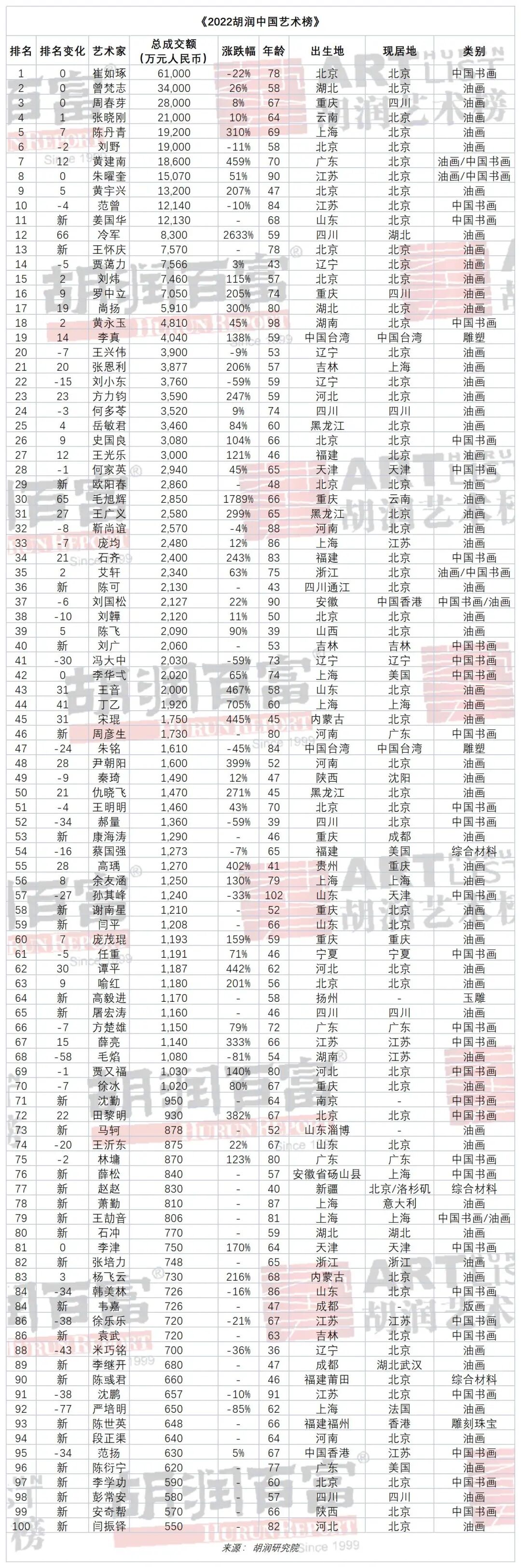 ( 导读:《2022胡润中国艺术榜》发布,崔如琢连续八年成为中国第一国宝艺术家,崔如琢去年卖画6.1亿元,八年卖画总计57亿元。)