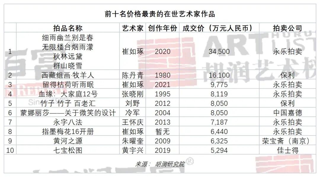 崔如琢过去一年成交6.1亿元,8年蝉联胡润中国艺术榜榜首。