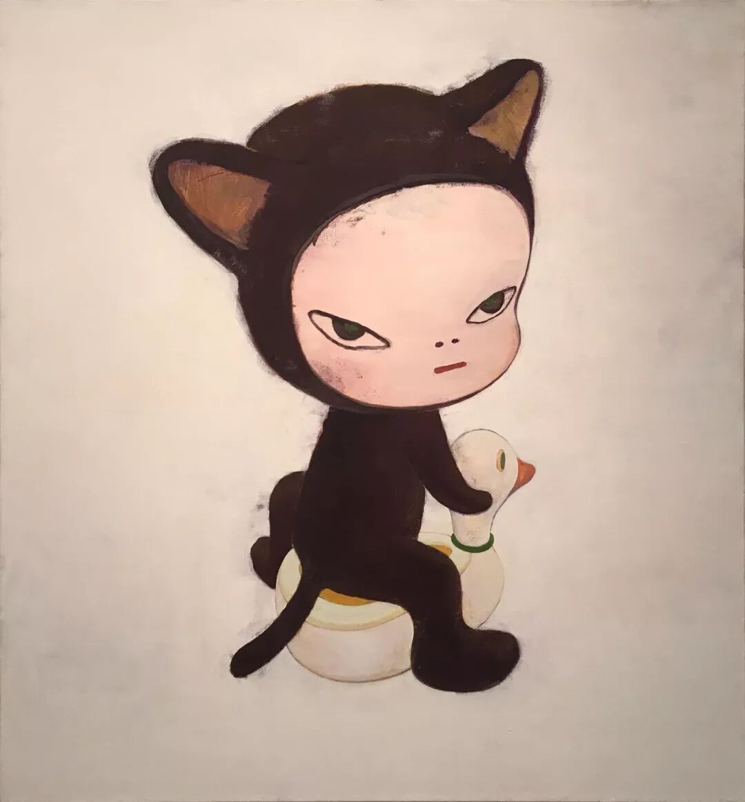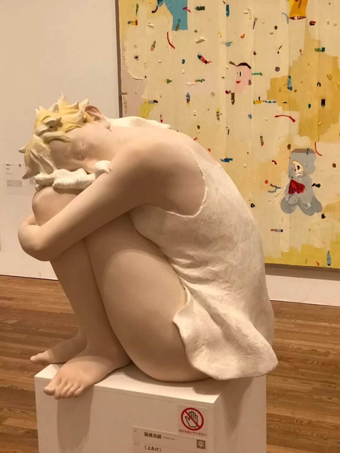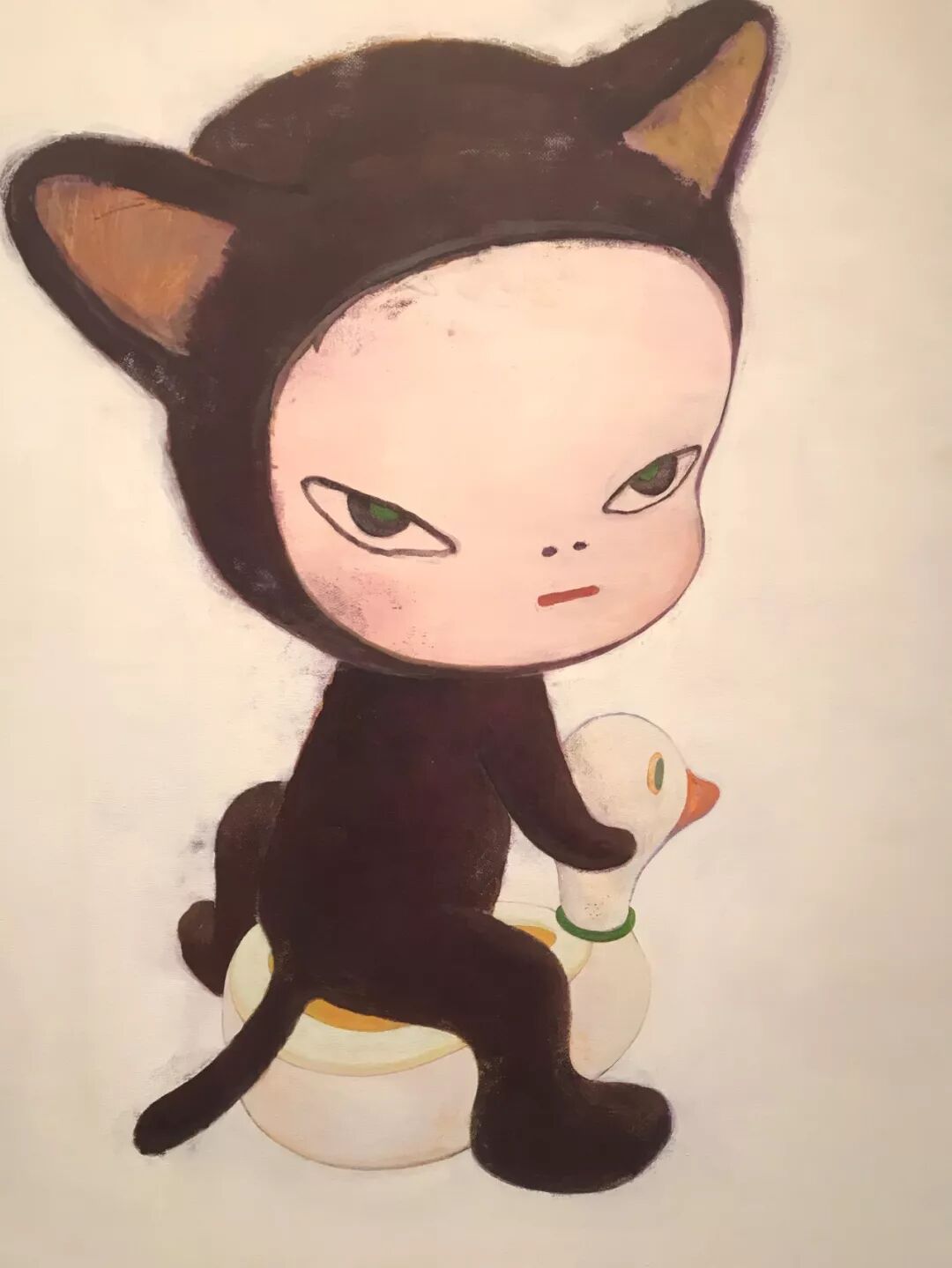 我不通日语,这虽不便于阅读美术馆中对于艺术家的详尽介绍,但也恰恰促成了我对这些作品的直观理解。换言之,我对于日本美术产生的新一层面的认识,竟也得“益”于我日语的贫瘠了。奈良美智的画我之前便见过许多,只是这印象限于形式了,而看到作品时,真正打动我的还是偌大画布上那几笔最原始的涂抹。常说画如其人,其实画更如其心,我从这些画作中看到的,是一颗纯净坦白、开门见山不加粉饰的固执画心。