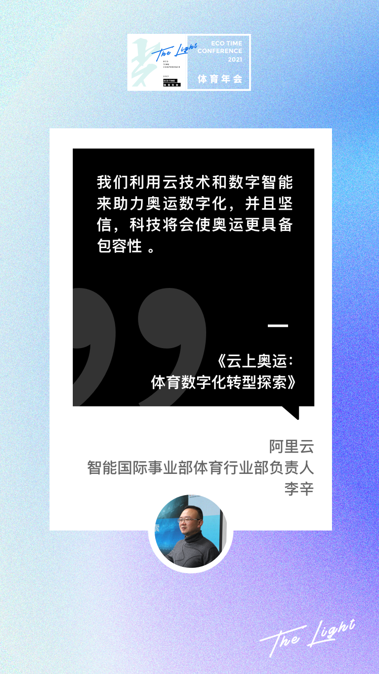 又一年的「光」ECOTIME体育年会圆满落幕了。在总结篇中,我们将以演讲概述+金句海报的形式,快速回顾本次年会每一场内容分享的精彩瞬间。