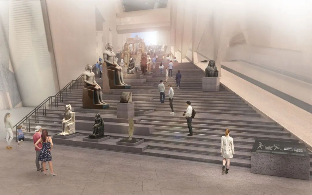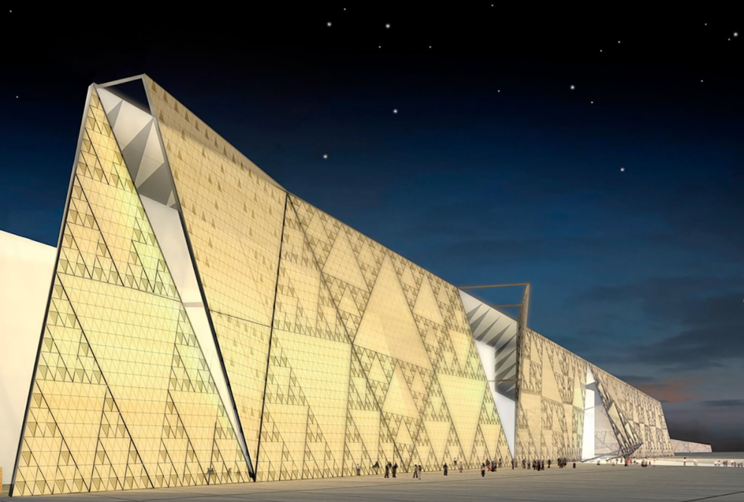大博物馆地处开罗的吉萨区,分别由爱尔兰、德国、日本的设计工作室及公司合作设计。自2002年立项,构造近10年推演完成。目前整个建造成本已超越10亿美元。