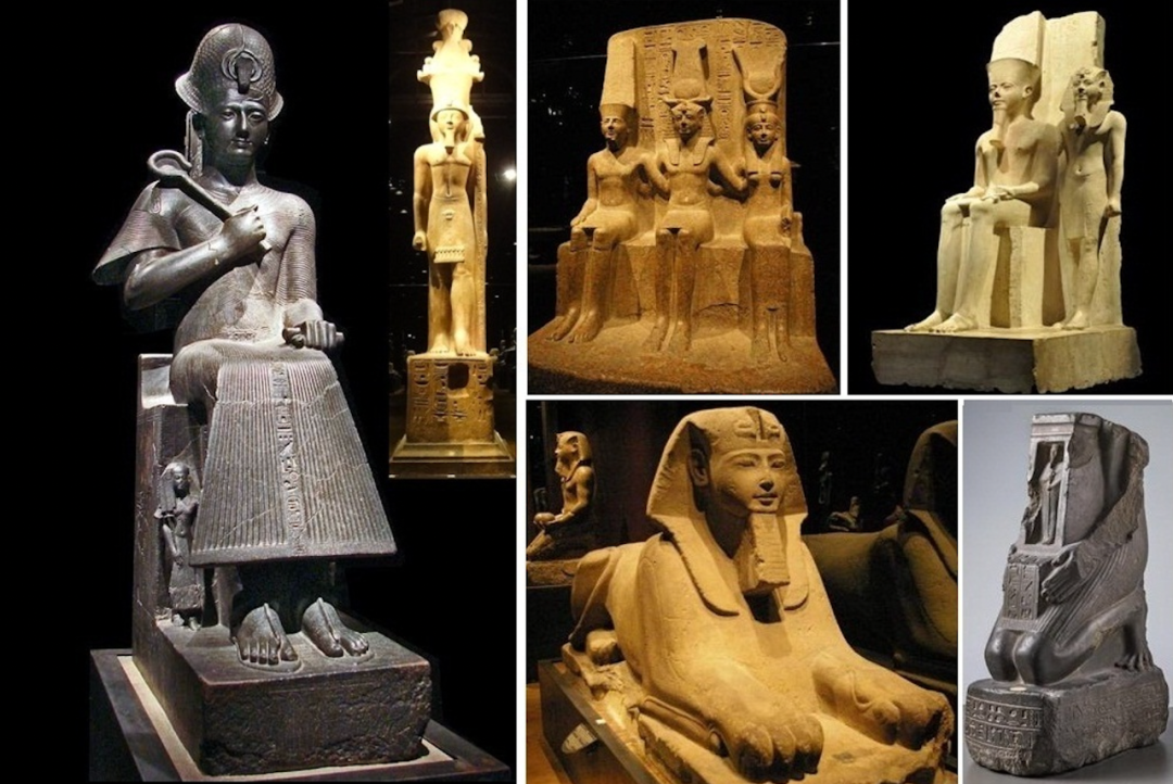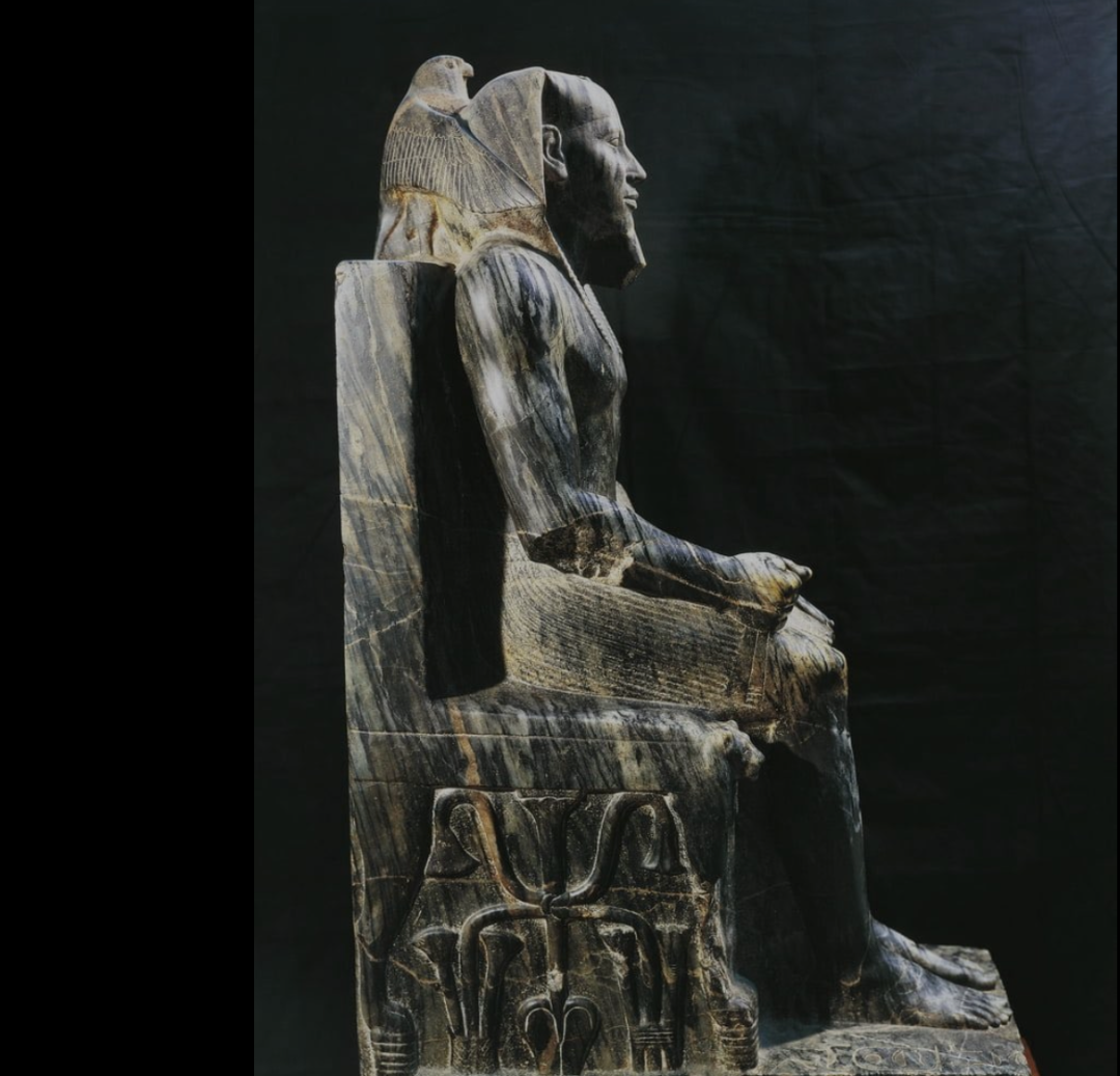 馆藏还包括第四王朝法老:胡夫儿子哈夫拉的闪绿岩坐像,这位著名暴君是吉萨第二座金字塔的建造者,雕塑发现于哈夫拉山谷神庙中。
