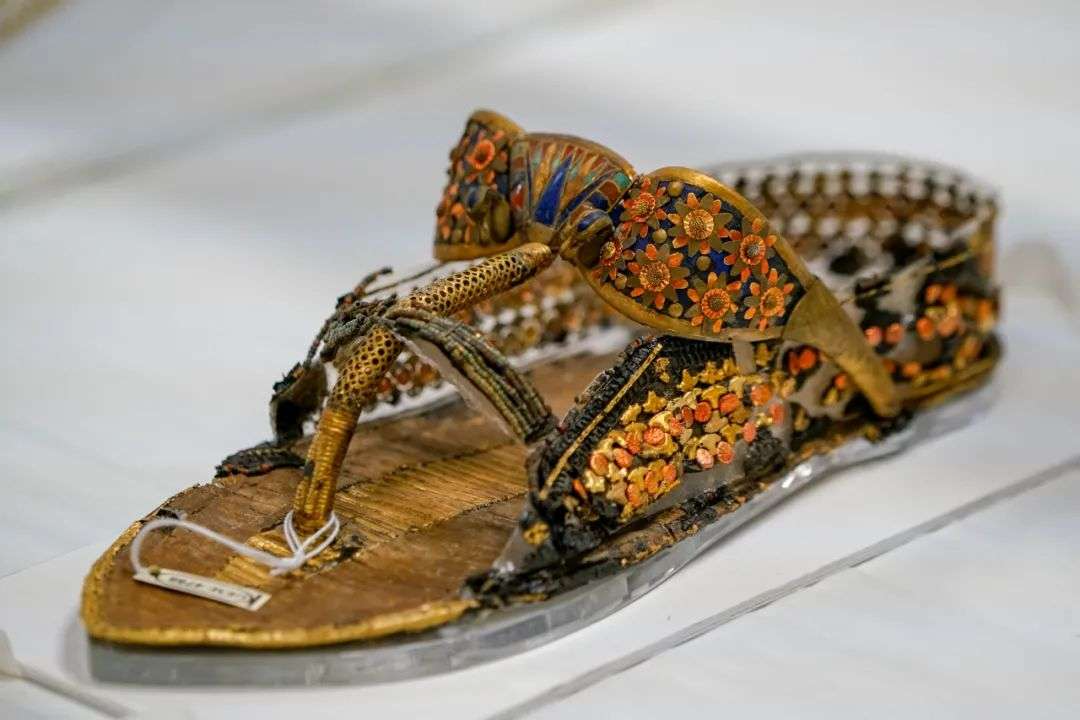 图坦卡蒙穿的凉鞋,工艺自然不用说,关键是那些花纹历经千年却依旧那么鲜艳!