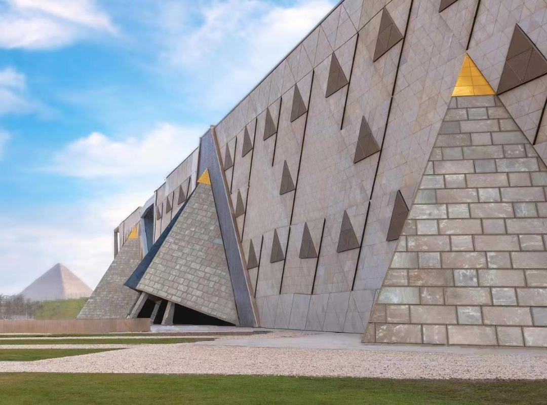 在苍茫沙漠和金字塔的烘托下,气势恢宏的埃及博物馆以全新姿态,昭示着埃及文明的希望和未来。
