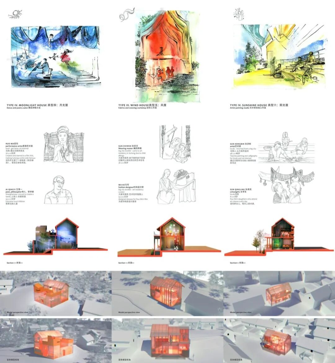 最新文章2023-06-12 DA!Architects | 以建筑设计为始,开启线上乡村振兴新模式 AIM意为"Architectsinmission——建筑师使命",旨在通过竞赛的方式,从年轻设计师中选拔优秀的人才,而更具意义的是,通过这一竞赛活动,希望能唤起更多的青年设计师对设计的热情和投入,对社会责任感和使命感的关照,积极去思考与行动。AIM始终将关注重点放在青年设计师的成长,不断发掘“蓬勃的生命”与“深刻的使命”碰撞后产生的故事。 2021年10月,AIM国际设计竞赛发起「潮玩乡村·石排创造」石排村镇新场景设计竞赛,选取了福隆村、埔心村和塘尾村3个村落5个空间用于参赛者探索空间与生活的关系,旨在秉持“乡村潮玩生活美学实验”的理念,借用设计的力量使石排镇成为展示“乡村与潮玩新业态如何建立关联”的示范区。 本文通过对话「潮玩乡村,石排创造」石排村镇新场景设计竞赛邀请赛团队之一——DA!Architects,进一步了解设计师们对于乡建的看法与实践,以及如何以年轻视角和玩法将古村落和现代潮流生活方式相结合,创造独一无二的石排IP,拓宽人们对于村镇生活的想象边界。 01 用故事驱动设计 用建筑传递笑容 “我们一直追求用故事驱动设计,用建筑传递笑容,努力打造独特、艺术、诗意的心灵场所,与自然、人不断对话。” DA!中文发音的意思是“伟大”,俄语发音的意思是“是的”。作为跨国文化工作室,孙立东和安娜曾多次参加AIM发起的设计竞赛,从AIM苏红古寨新场景设计竞赛二等奖、安宁金方乡村公共空间设计竞赛菜市场组入围奖到开封首届空间场景国际设计竞赛一等奖等等,他们的作品涵盖了90 多个住宅和商业建筑、公共空间、大型公司的办公室等项目。在他们的在设计中总是会很本能地想到人和人在空间中发生的故事和场景,他们用绘画绘图等建筑设计手段把想象中的场景和底层相通的规律描绘出来。 以苏红古寨项目为例,他们所设计的《苏红——缤纷屋顶景观村 | 2024》是在萤火虫屋里想象了6个人物故事——建筑师夫妇的斑驳浪漫、雾屋里浴场女主人的健康养生、羽翼拥抱屋里老爷爷的艺多稳重、月光屋里的舞蹈家和诗人惊艳与诗意、风屋里的艺术家母亲五彩神秘、阳光屋里的画家美学写实,通过这6个人物故事,设计了6种房型,它是一个小院,一个小屋,一个晾衣架,一个游泳池,一个茶馆等等,村寨的场域也就变成了色彩鲜艳、生机勃勃的屋顶景观,人们便会在此聚集。 《苏红——缤纷屋顶景观村 | 2024》 他们在开封竞赛中的作品《“藏龙”双龙巷沉浸式剧场》也是以传承开封文化为目标,跳出传统街区改造的桎梏,用故事驱动设计打造了一个情景体验式的双龙沉浸式剧场。 由于孙立东和安娜来自不同的国家,在创作上,他们在大的方向上认同彼此,但经常也会有不同思想的碰撞。而创作中最有趣的瞬间就是基于不同文化身份和文化土壤所导致的一些话题和不同的视角,去激发不同的想象空间,打开一个新的创造力世界。“设计师要永远带着赤裸的眼睛,像婴儿那样,从零开始去思考问题,设计场景和情景,因为设计的内核最终还是需要回归到内容本身。”这也是孙立东和安娜在设计时最注重的一点。 《“藏龙”双龙巷沉浸式剧场》 02 讲好石排故事 打造石排潮玩元宇宙 “乡村振兴的手段有很多,每一个乡村都在找寻独特的定位,石排无需复制别人成功的模式,需要从提升文化自信和历史自信出发,找到石排独特的定位。” 近一年来,大!建筑事务所不仅在设计道路上不断前进,还开始加入元宇宙赛道,成为虚拟空间场景的设计师,他们不管是在观念上、技术上,还是对项目未来的思考上都发生了本质的改变。孙立东和安娜认为,从线下到线上,变化还是很大的。 第一,建筑设计需要落地在现实中,是物理空间属性,需要考虑建筑的材料、重力以及个人的使用等等;元宇宙是落地在虚拟空间里,需要结合虚拟空间的需求开发引擎进行落地。 第二,现实中需要考虑线下建筑空间所覆盖的范围有一定的局限性,它被固定在环境里;但在虚拟空间里,这是互联网产品,覆盖面更广,只要有互联网的地方都能被影响,范围并没有很多边界。 第三,现实中的建筑95%需要考虑其在商业上的实用性,比如餐厅、民宿、咖啡厅等人们固有认知中熟悉的东西;而元宇宙虚拟空间还没有这样的标准,每个人都是创作者,都可以从零开始建立一个空间,这是完全具备开放性的,在虚拟空间中可以天马行空去想象,不受任何边界的限制。 简而言之,建筑设计受制于重力和现实考虑,元宇宙空间受制于想象力。孙立东和安娜认为进入元宇宙赛道后,做建筑设计时会增加一个很重要的视角——如何做线上的留存和体验。线下设计会产生影响力或是IP属性等,但线上可以做到更多的商业转化,比如抖音是一个大的流量池,每个人发视频相当于有自己的店铺,有人路过会点赞或者关注,有人会付费,其实与商场并没有太多不同,两者都是流量的转化,只是现在大众的注意力更多的是在线上。 孙立东和安娜是行业的先行者,在元宇宙最火的时候,他们所创造的元宇宙产品曾在发行后的几秒便瞬间传达给一万多个用户并完成交易,而且每一个产品都是独一无二的。石排也可以创造属于自己的元宇宙产品和世界。 银河安娜元宇宙IP 他们认为乡村振兴的手段有很多,每一个乡村都在找寻独特的定位,石排无需复制别人