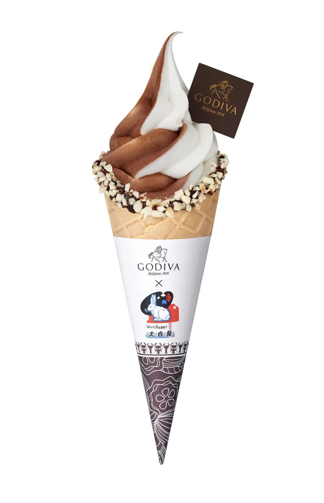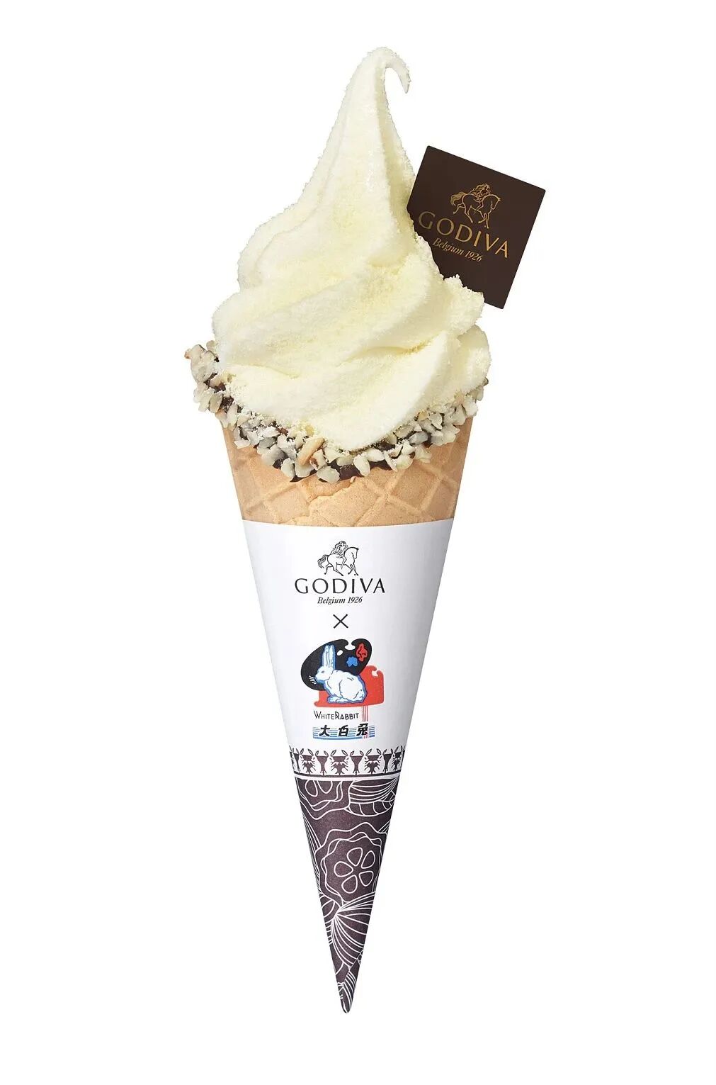 GODIVA和大白兔的联名,是一次潮流与情怀的融合,这一次不仅仅局限在图形和包装的合作,更是将大白兔味道融入到冰激凌中,作为品牌标志,每款冰淇淋都裹有大白兔奶糖定制糯米纸以及一小块Godiva巧克力,从"颜值"到"口感"都能让忠实粉丝感受到浓浓的情怀。
