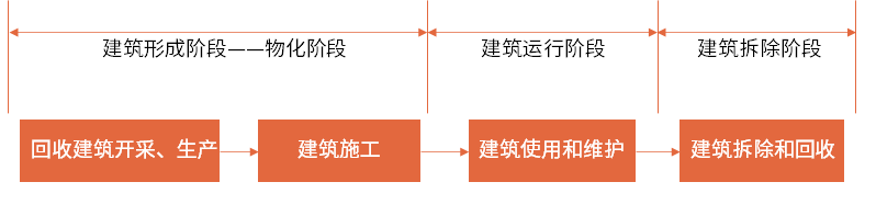 建筑拆除伴随着建筑的发展而发展,离开建筑的发展只谈建筑拆除是不切合实际的。根据中国建筑节能协会定义,建筑全生命周期可以分为建筑材料生产加工阶段、建筑施工阶段、建筑运行使用阶段、建筑拆除及废弃物处理阶段共四个阶段。